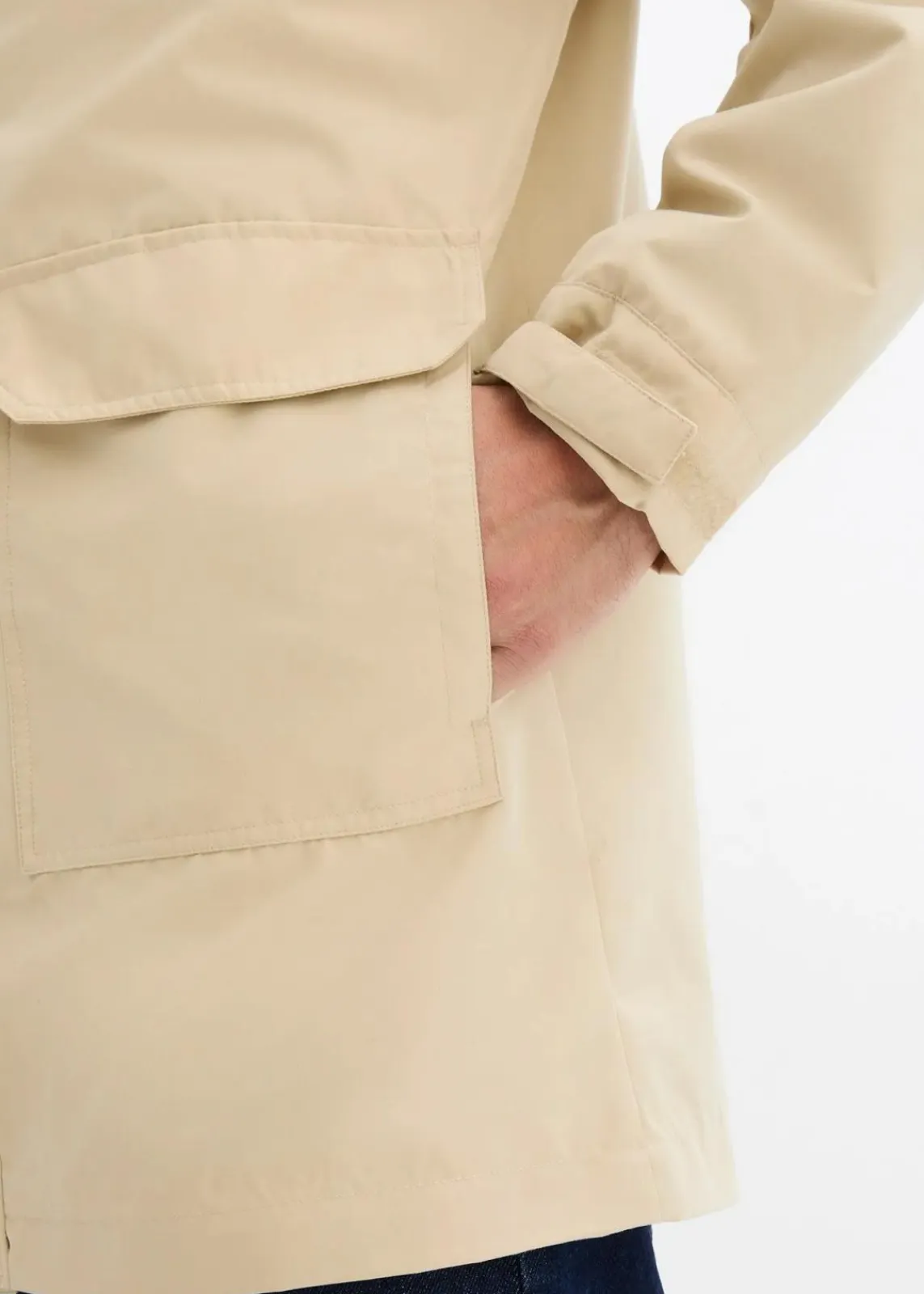 moderne Longjacke mit Kapuze und aufgesetzten Taschen