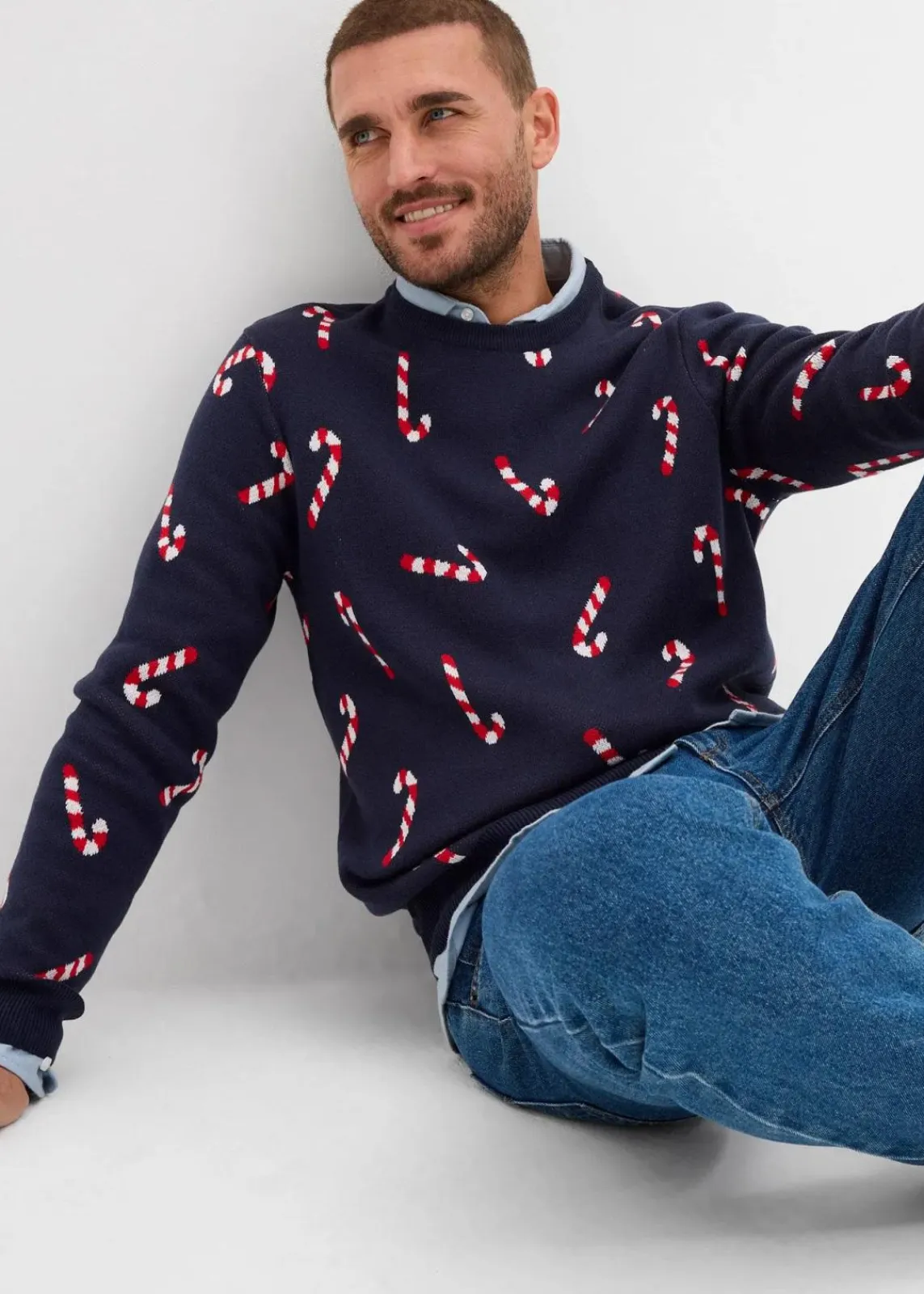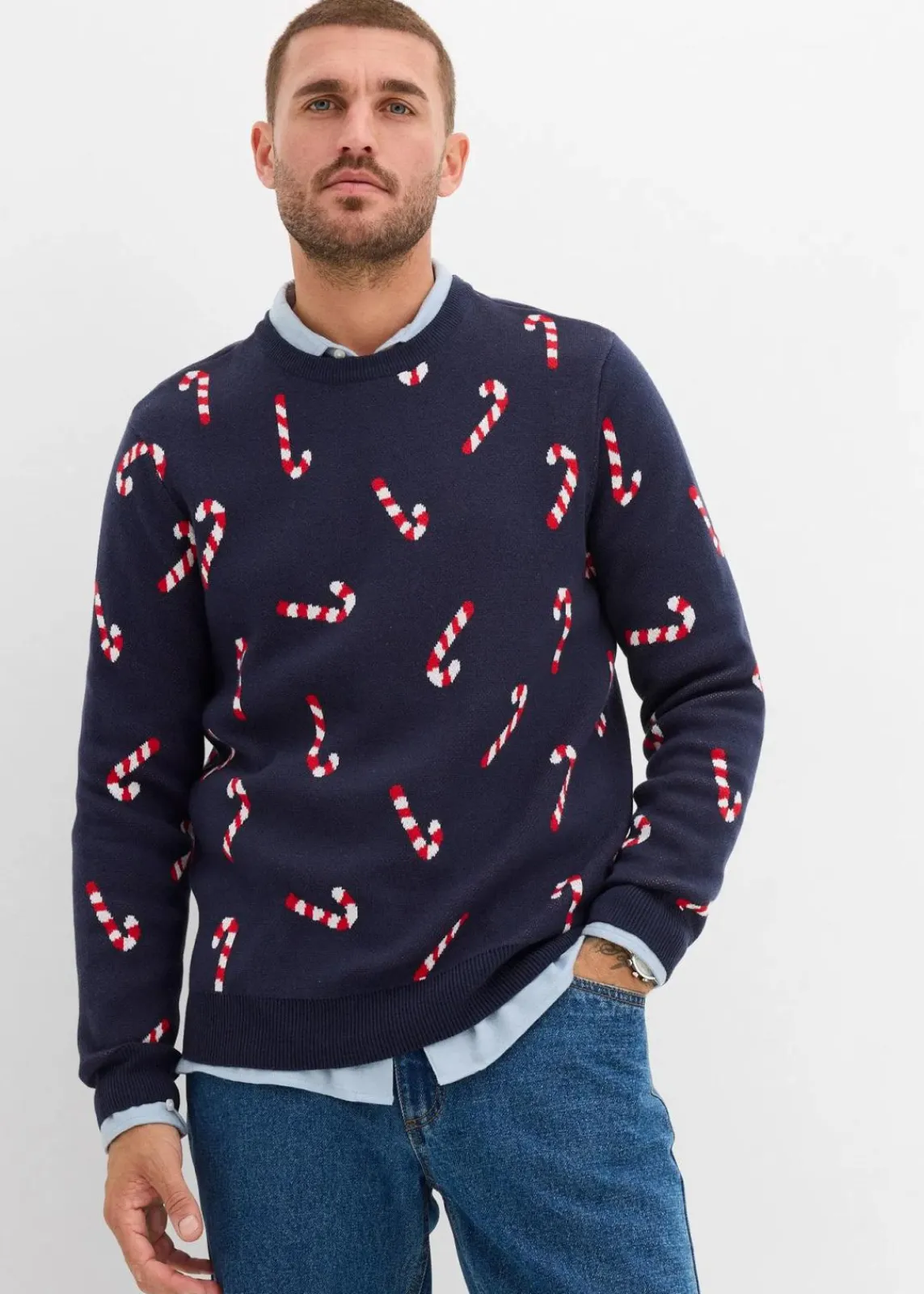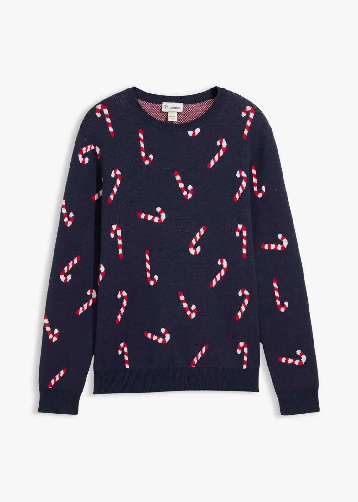 moderner Feinstrickpullover mit weihnachtlichem Motiv