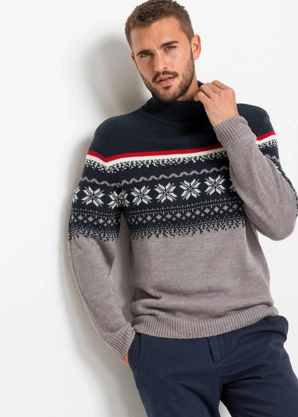 Modischer Herren Rollkragenpullover mit Norwegermuster