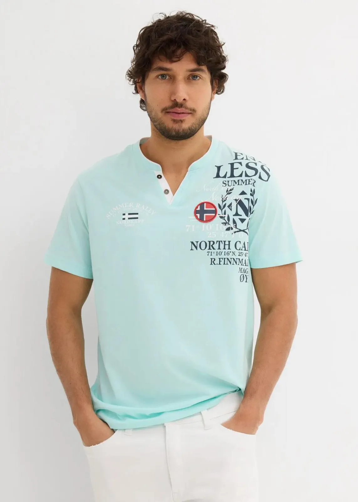 Bedrucktes Henleyshirt mit Verzierungen aus reiner Bio-Baumwolle