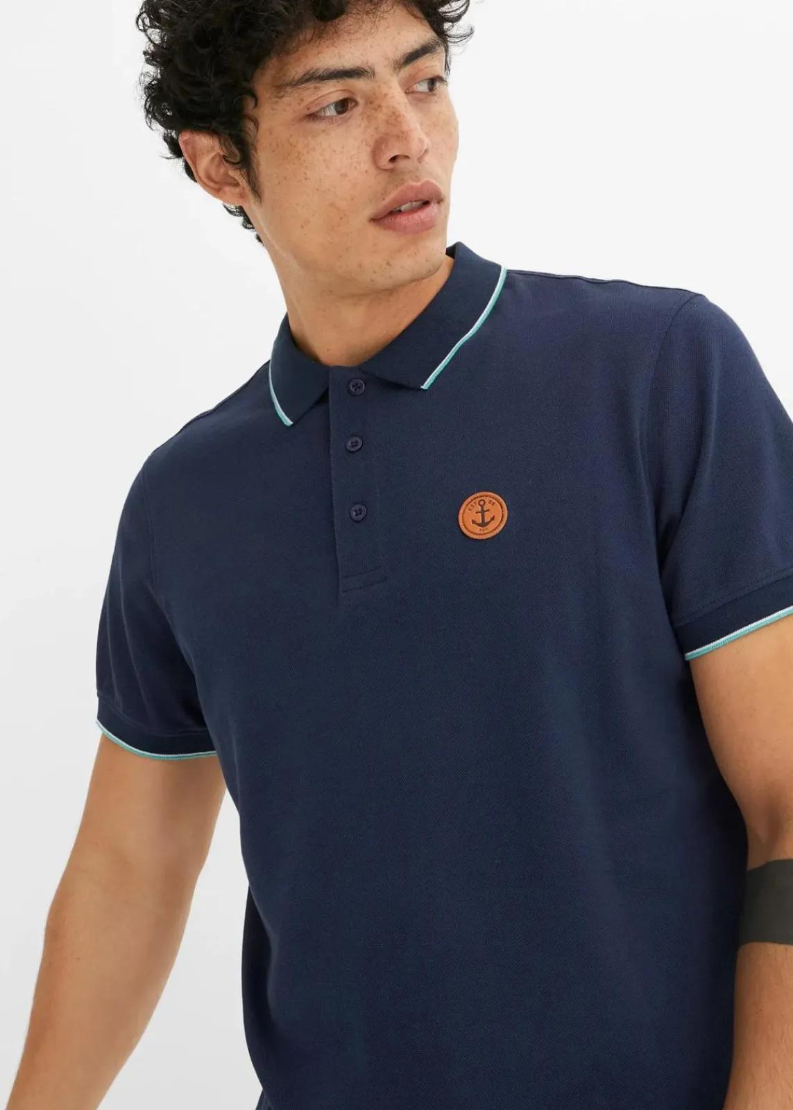Maritimes Poloshirt mit einem Lederimitat-Badge auf der Brust