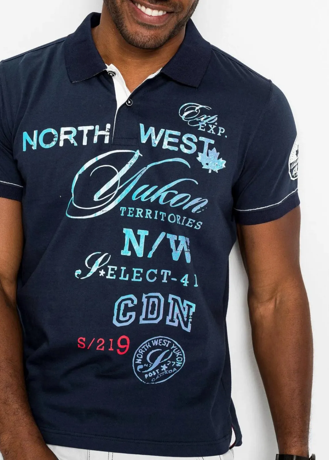 Angesagtes Poloshirt mit großem Frontdruck, maschinenwaschbar.