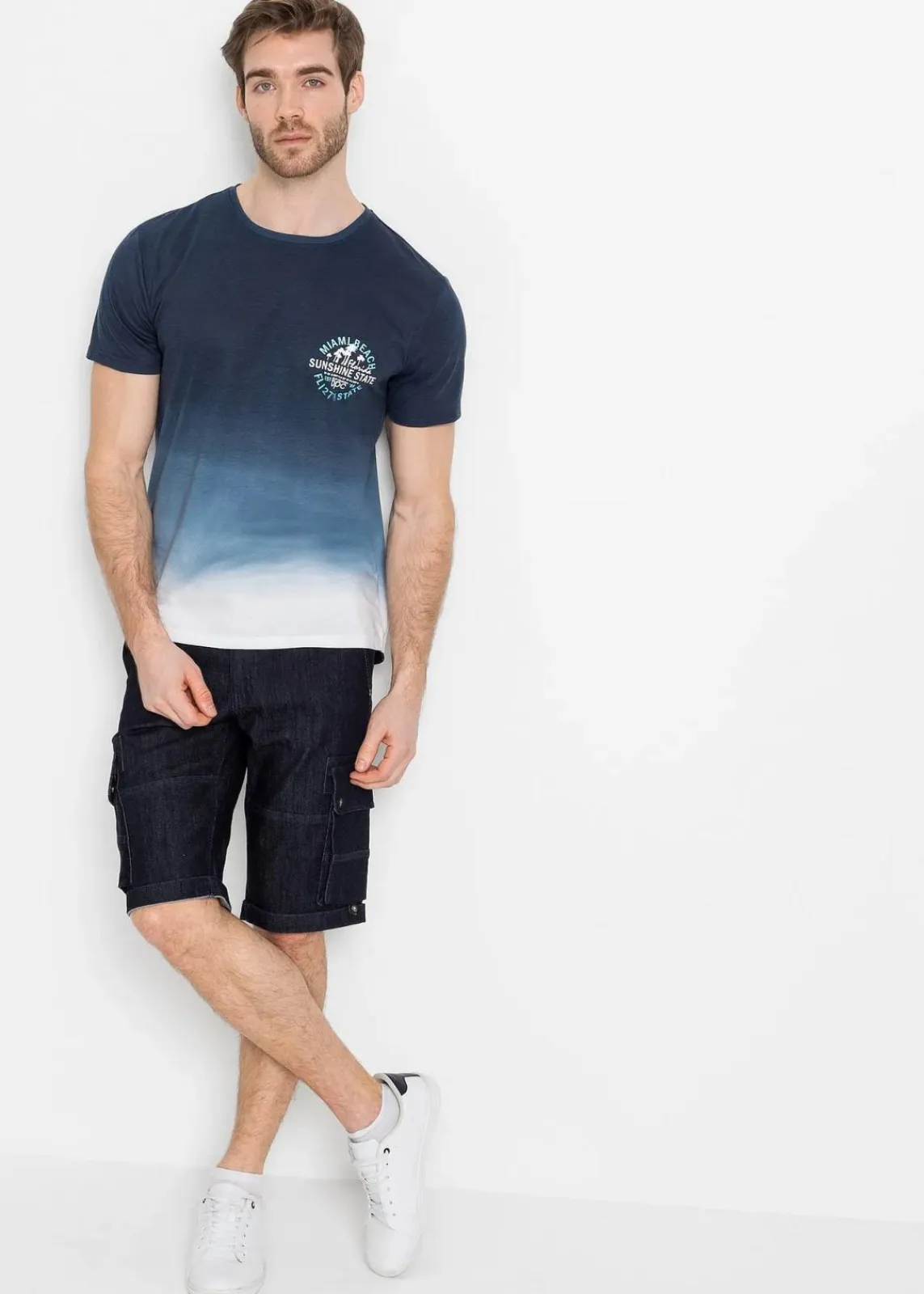 T-Shirt mit Farbverlauf und einem Druck auf der Brust