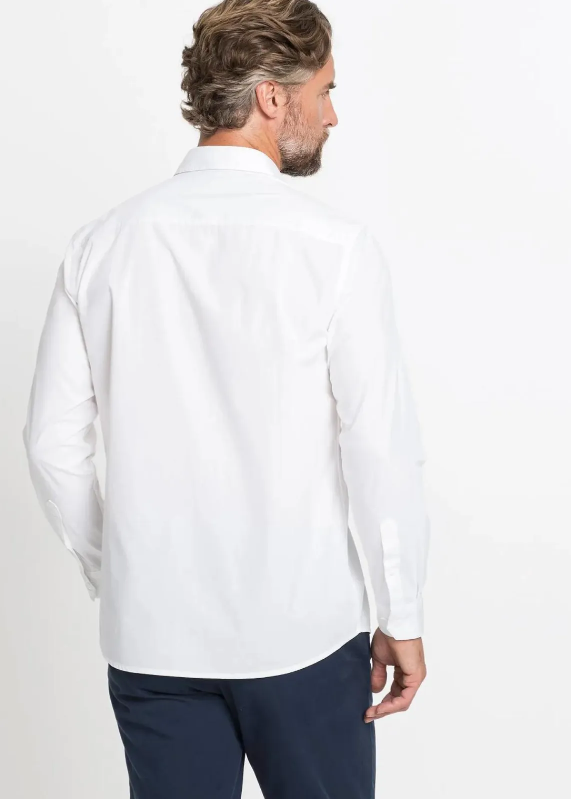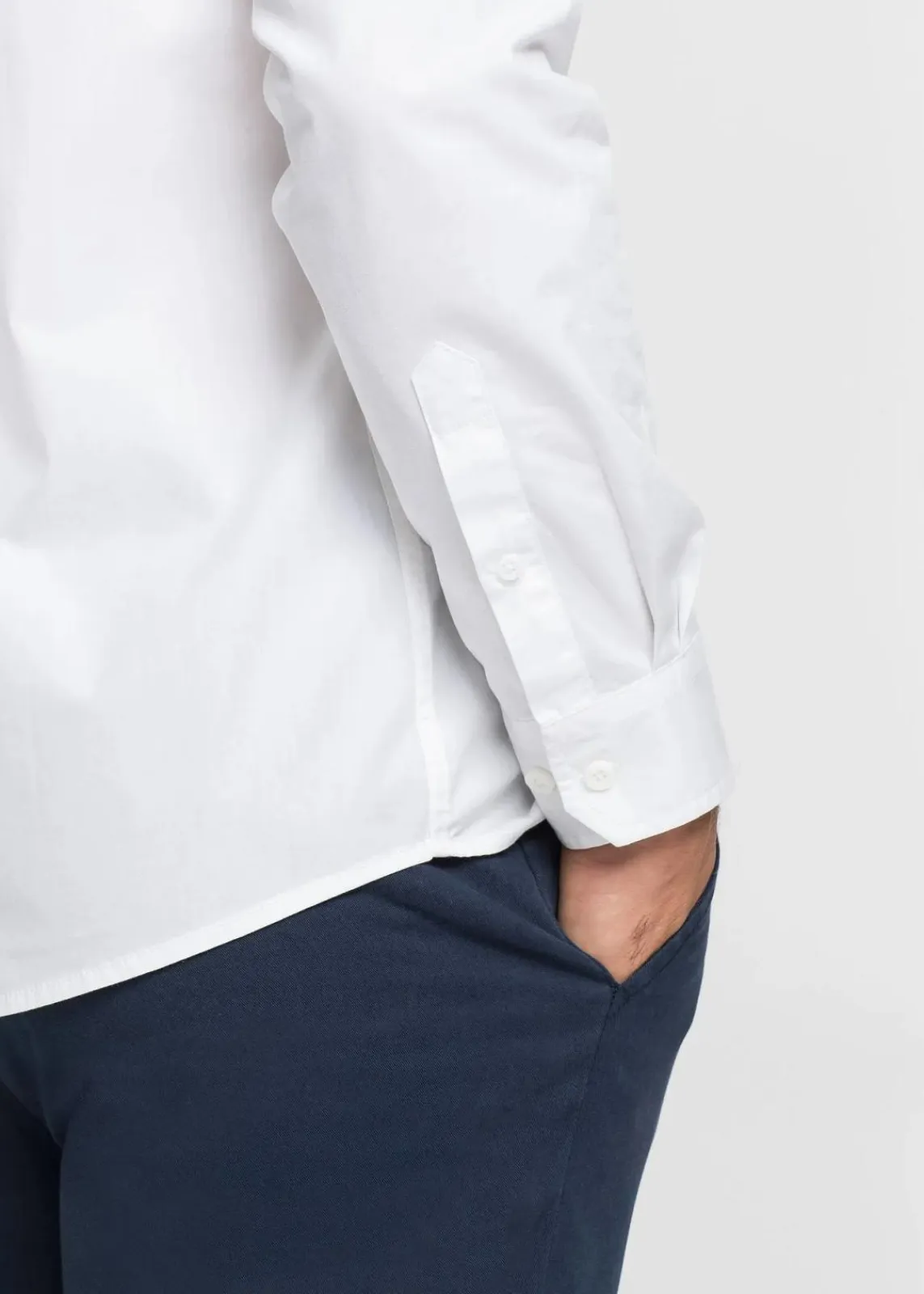 Hemd aus glattem Baumwoll-Webstoff, aufgesetzter Brusttasche und abgerundeter Saum.