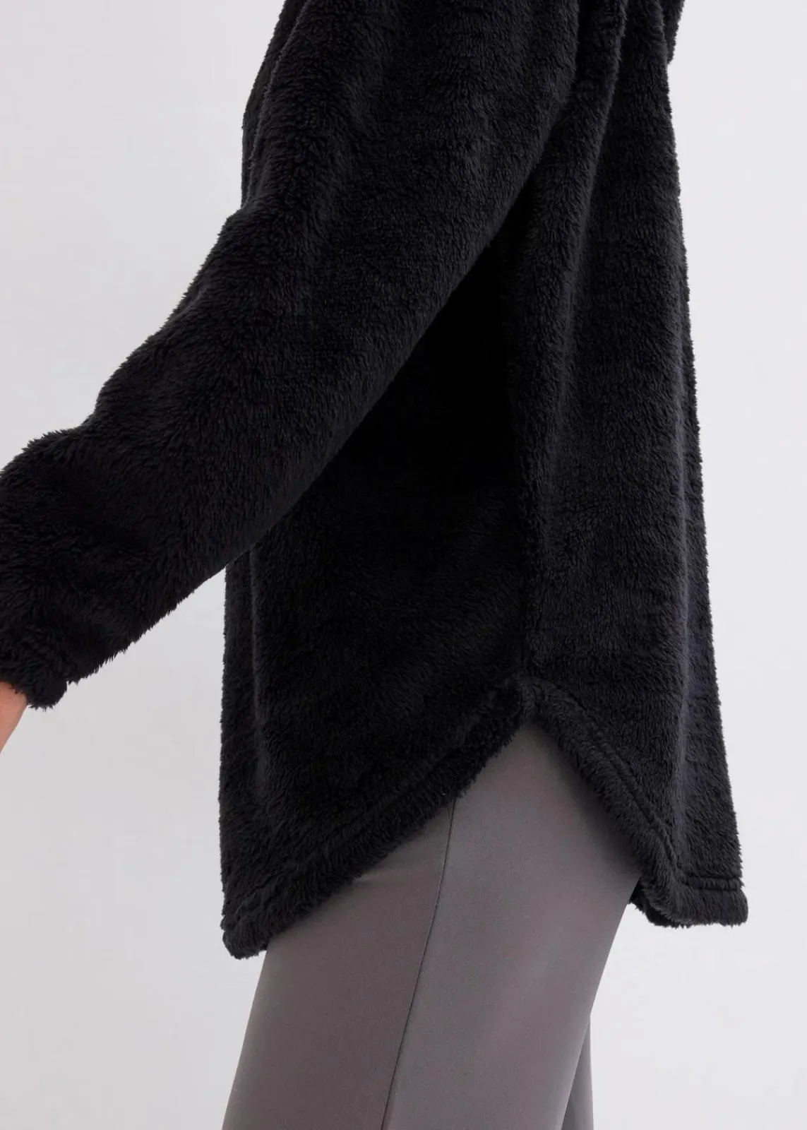Oversized Longpullover aus Teddy-Fleece, hinten länger