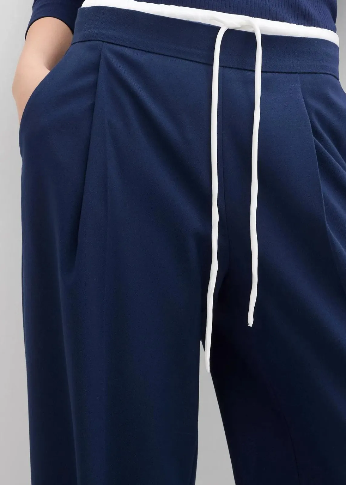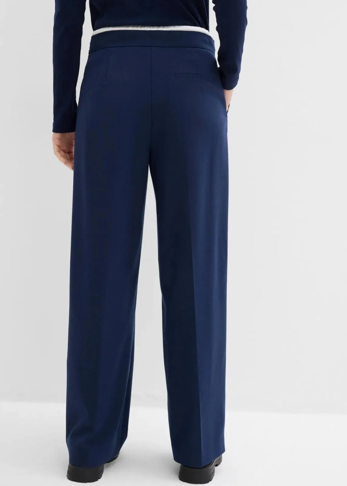 Hose mit weitem Bein und kontrastfarbigen Doppelbund mit Zip Fly und Knopf