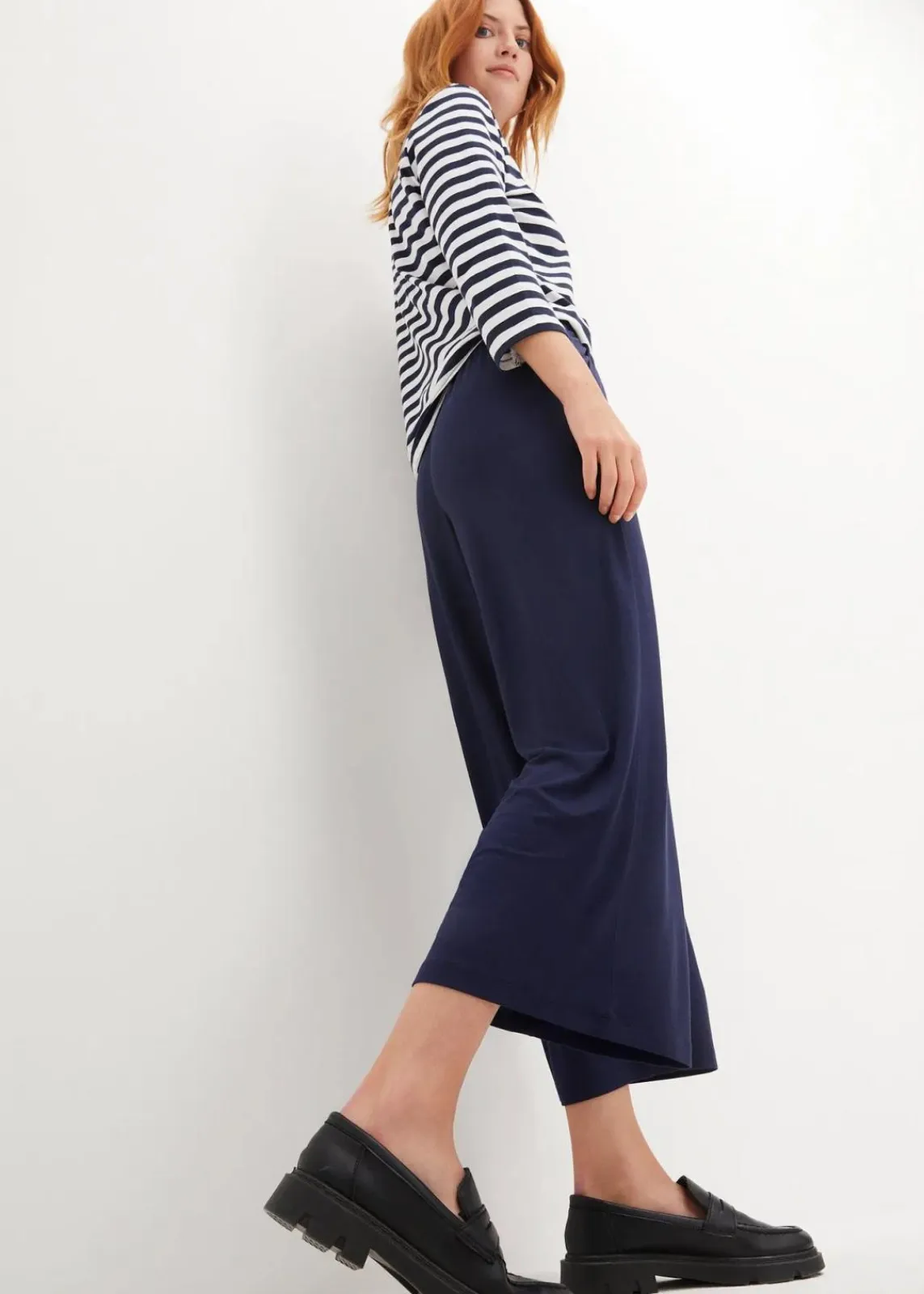 Lässige Hose mit elastischem Bund, aus fließendem Viskose-Mix, mit verkürztem 7/8 Bein.