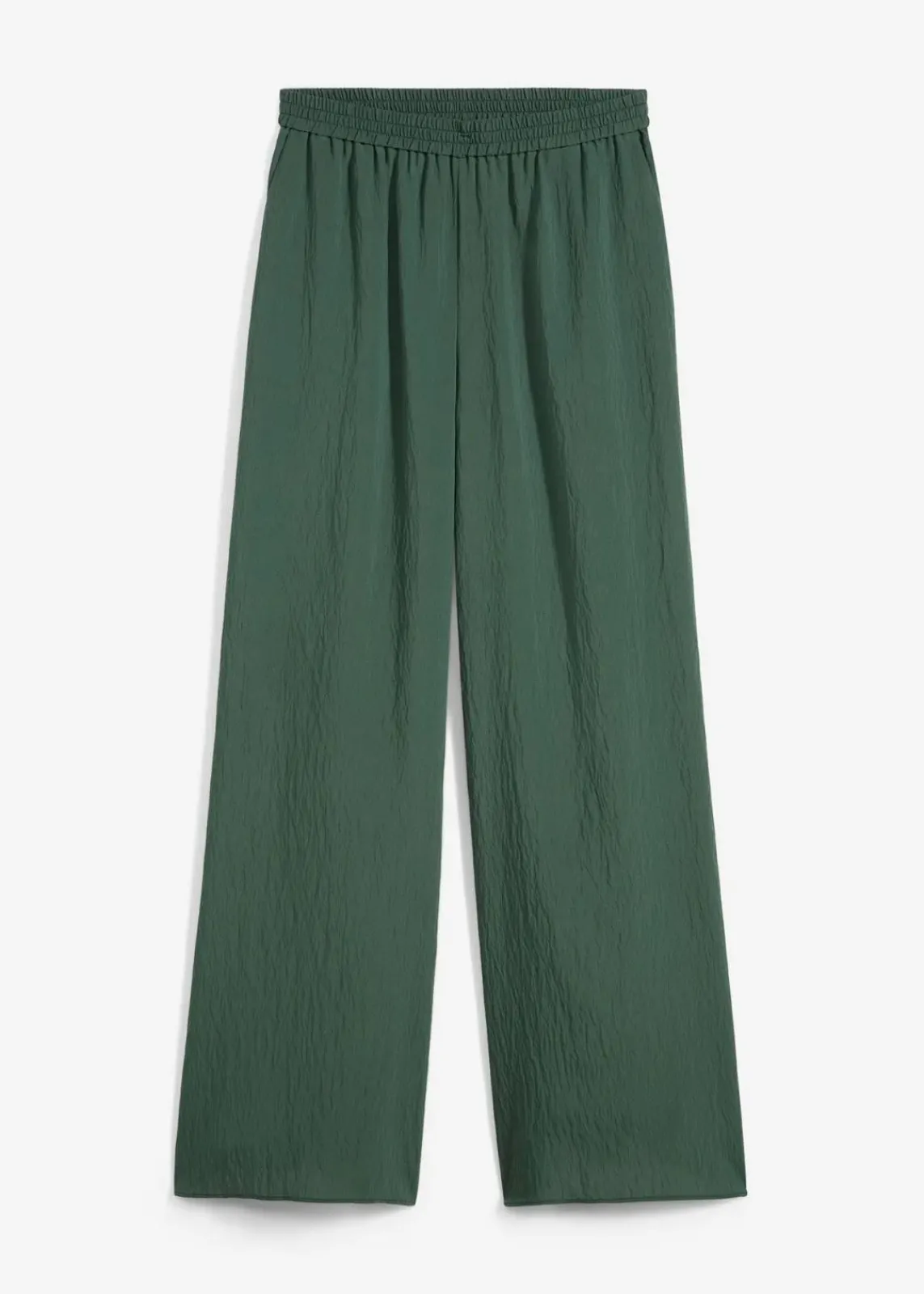 High-waist Hose mit elastischem Bund, seitlichen Taschen und weitem Bein aus strukturiertem Crinkle