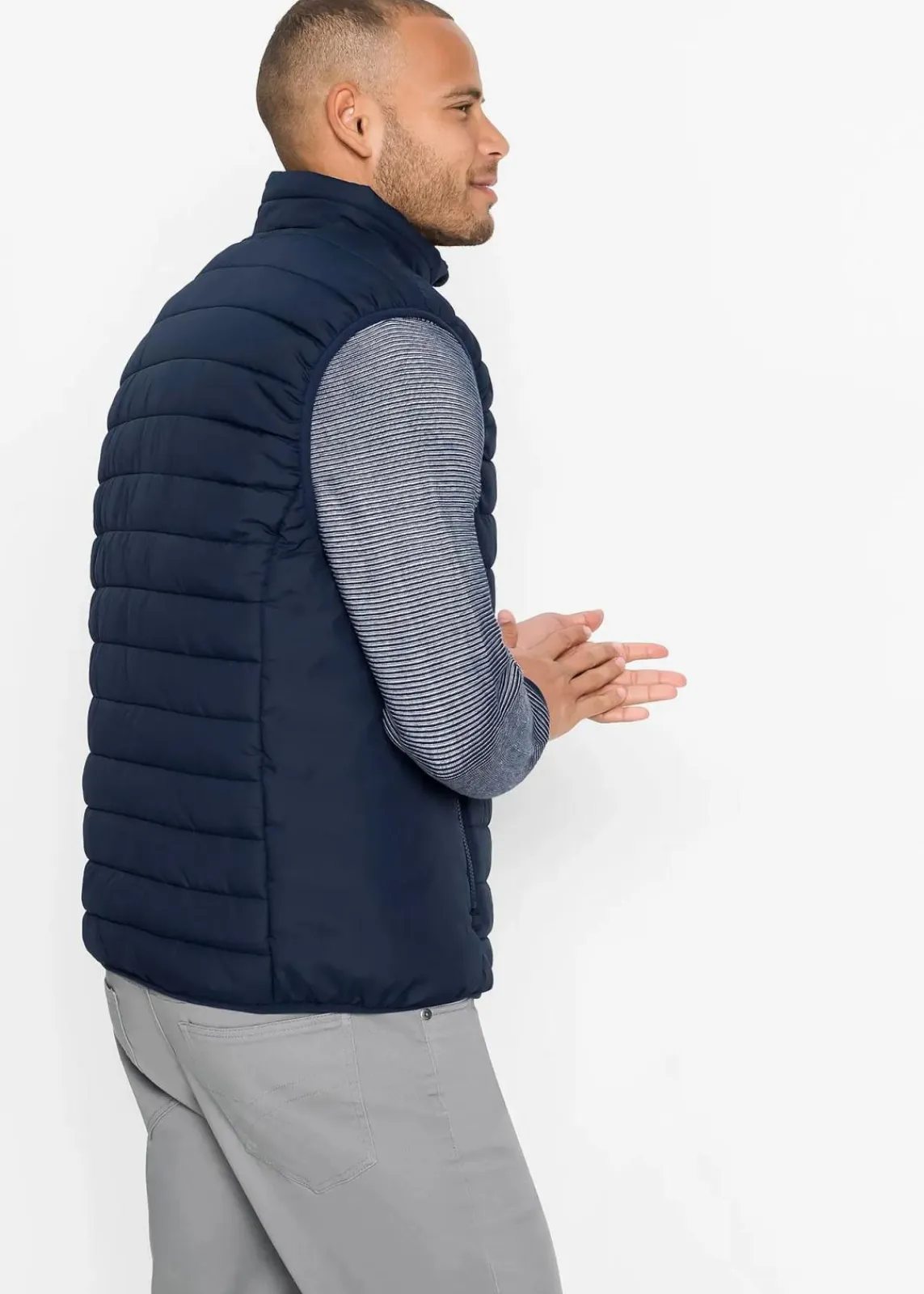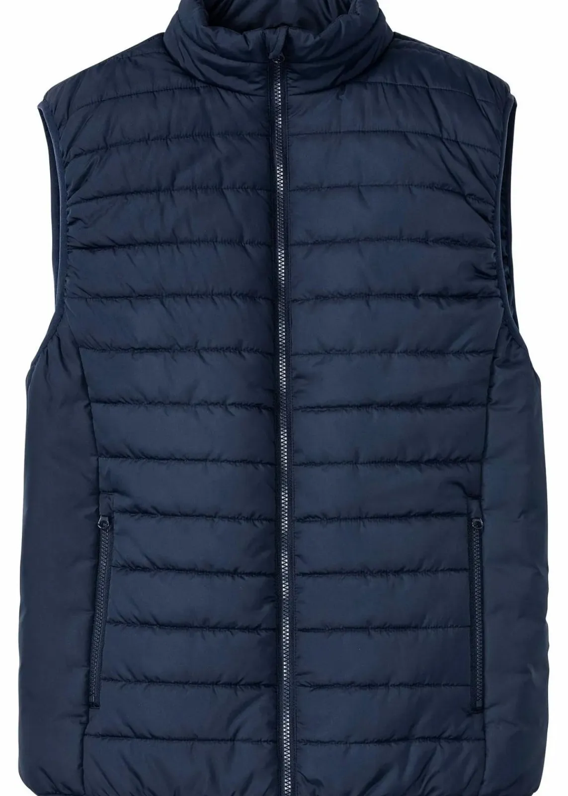 Besonders leichte, wattierte Steppweste aus glattem Webstoff. Zwei seitliche Eingrifftaschen und feines Innenfutter mit zwei Innentaschen