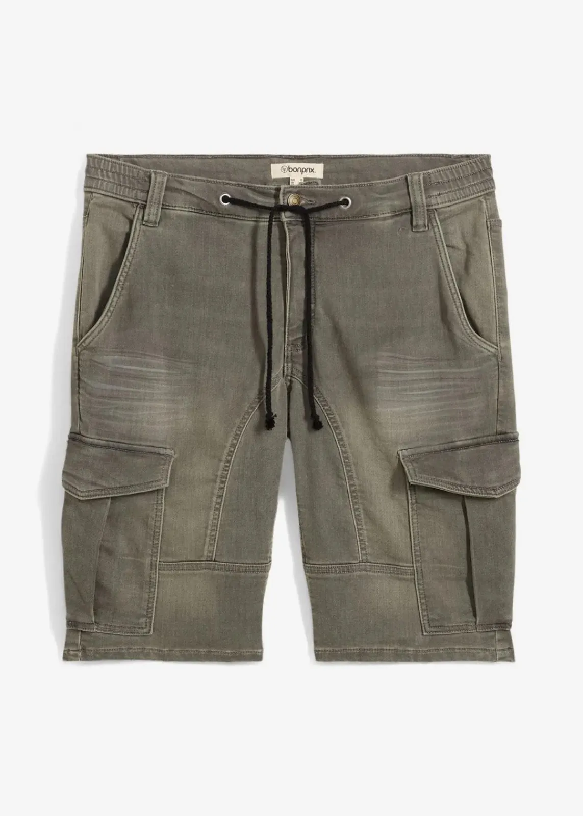 Kernige Jeans-Bermuda in Regular Fit mit seitlichem Gummizug und aufgesetzten Taschen