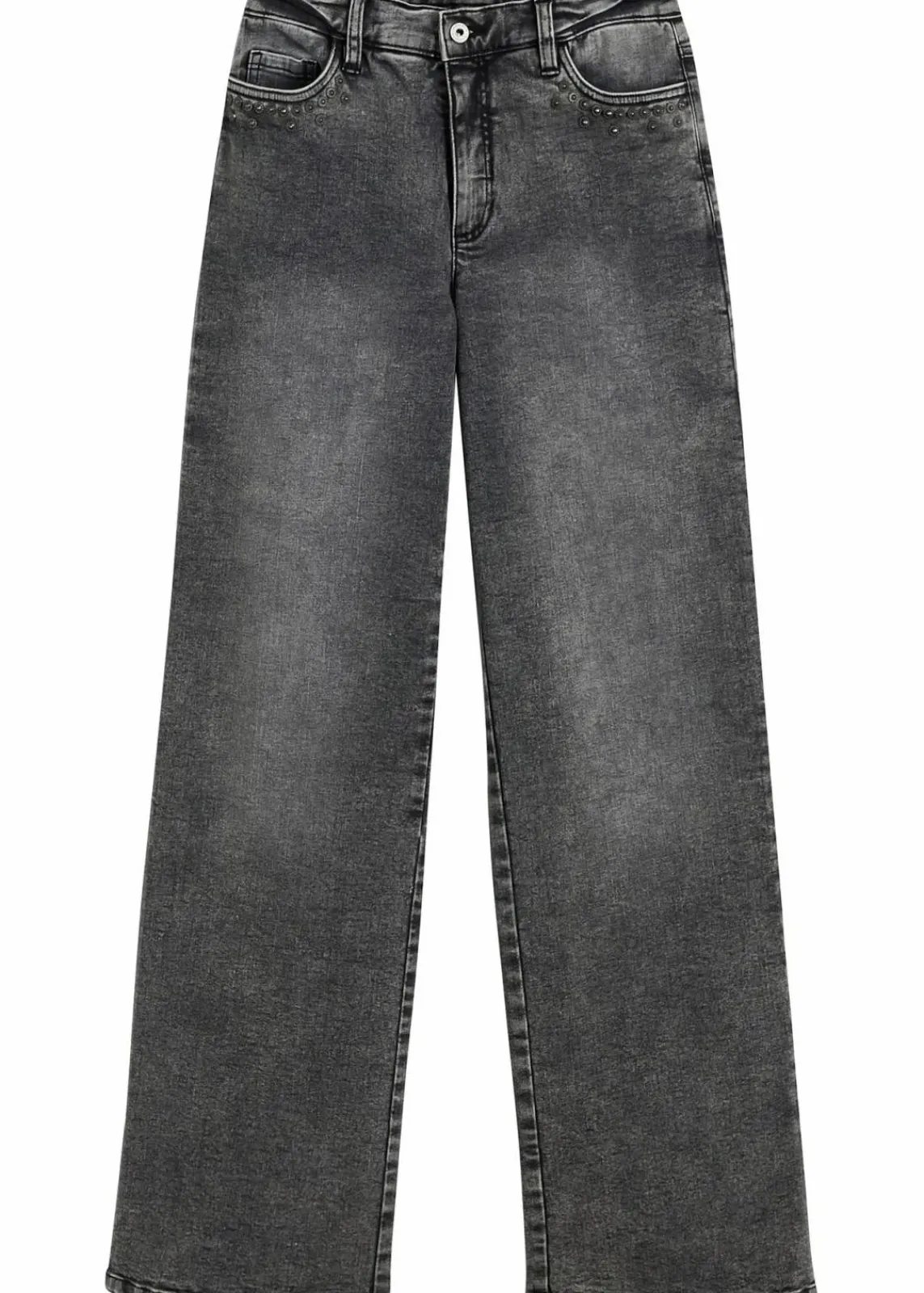 Modische Marlene Jeans in verwaschenem Grau mit Nieten-Details an den Taschen