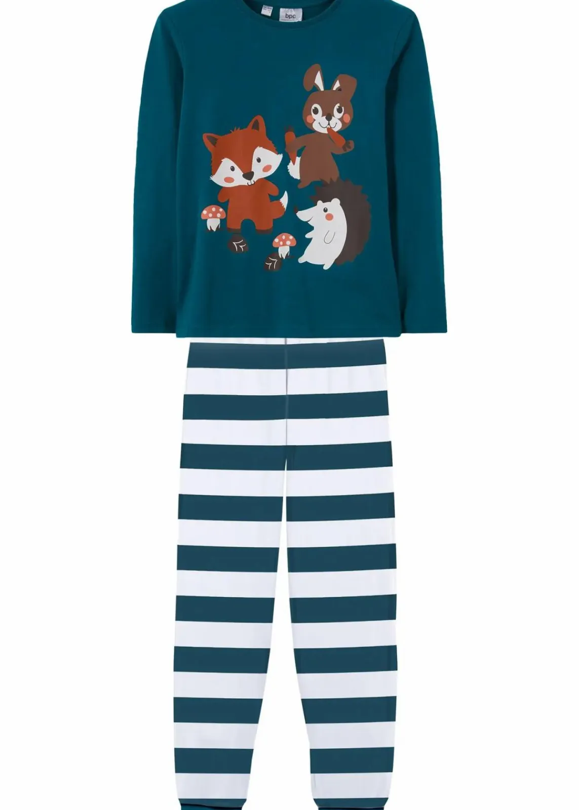 Dieser Pyjama besteht aus Longsleeve und langer, geringelter Sweathose aus Baumwolle. Auf dem Shirt befindet sich ein super süßer Tier-Druck. Durch die breiten Beinabschlüsse sowie den elastischen Bund ist diese Hose besonders praktisch und bequem.