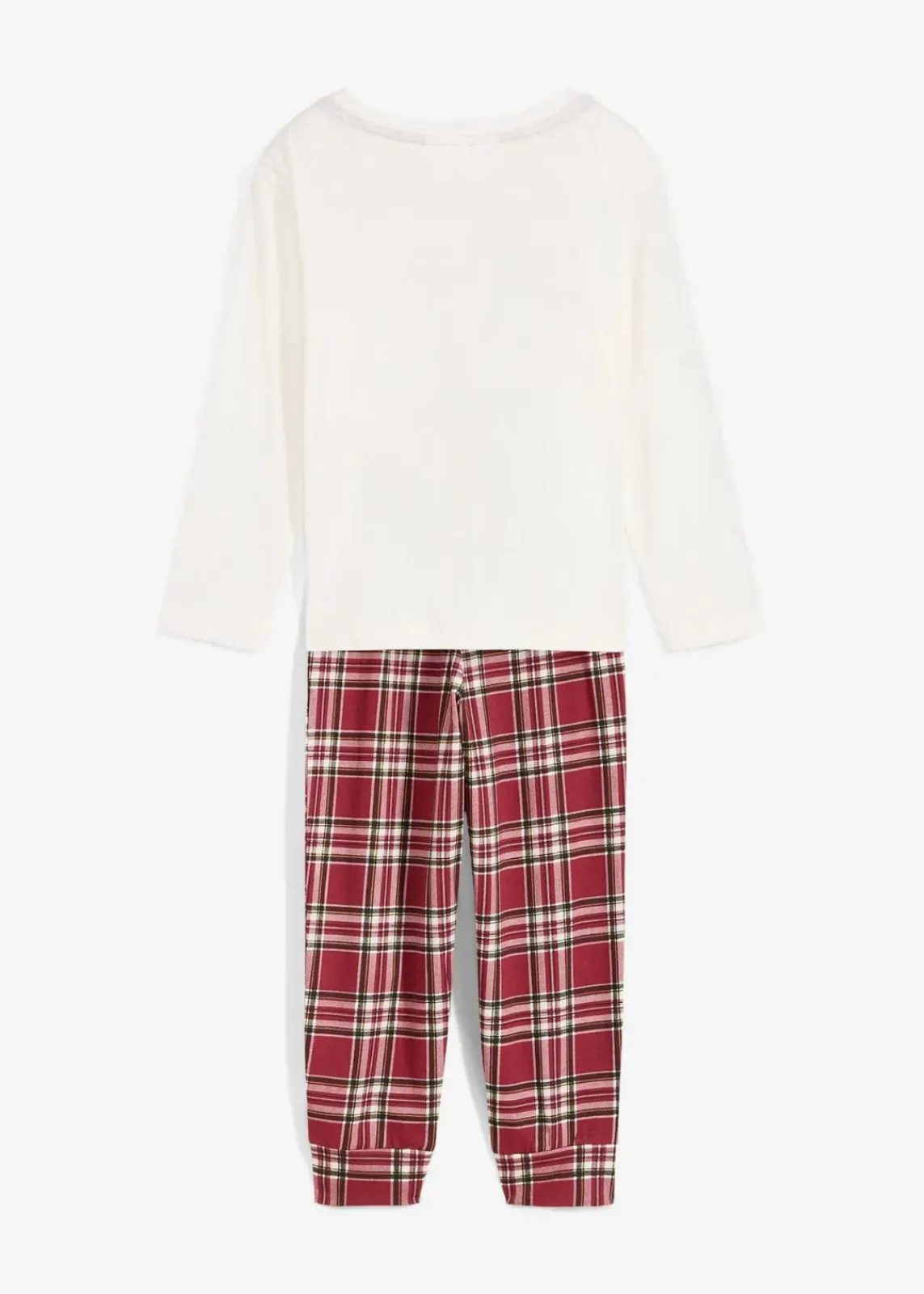 Dieser schöne Schlafanzug überzeugt besonders durch sein winterliches Design. Das Oberteil besitzt ein niedliches Rentier-Motiv auf der Vorderseite und die Hose ist mit ihrem Overall-Druck ein echter Hingucker! Besonders bequem wird dieser Pyjama durch seine breiten Bein- und Bund-Abschlüsse, sowie sein angenehmes Baumwoll-Material. Das perfekte Must-Have für die gemütliche Winterzeit daheim!