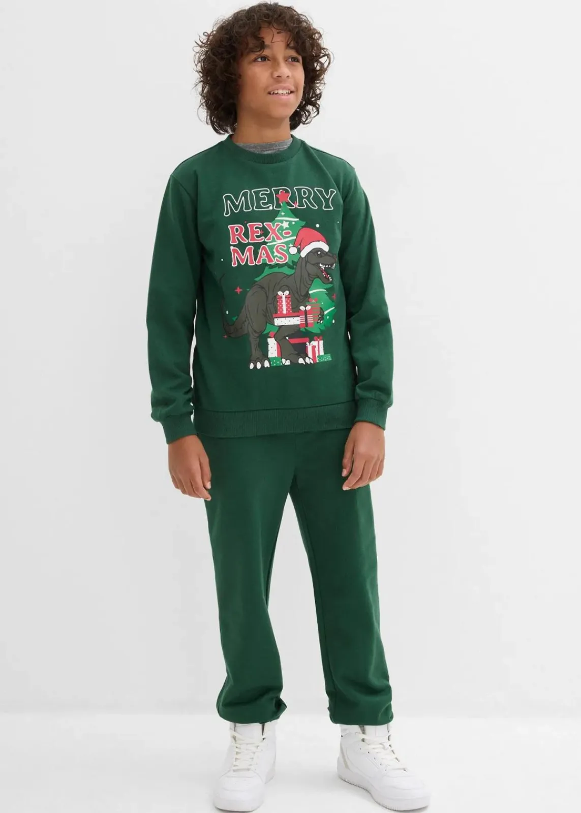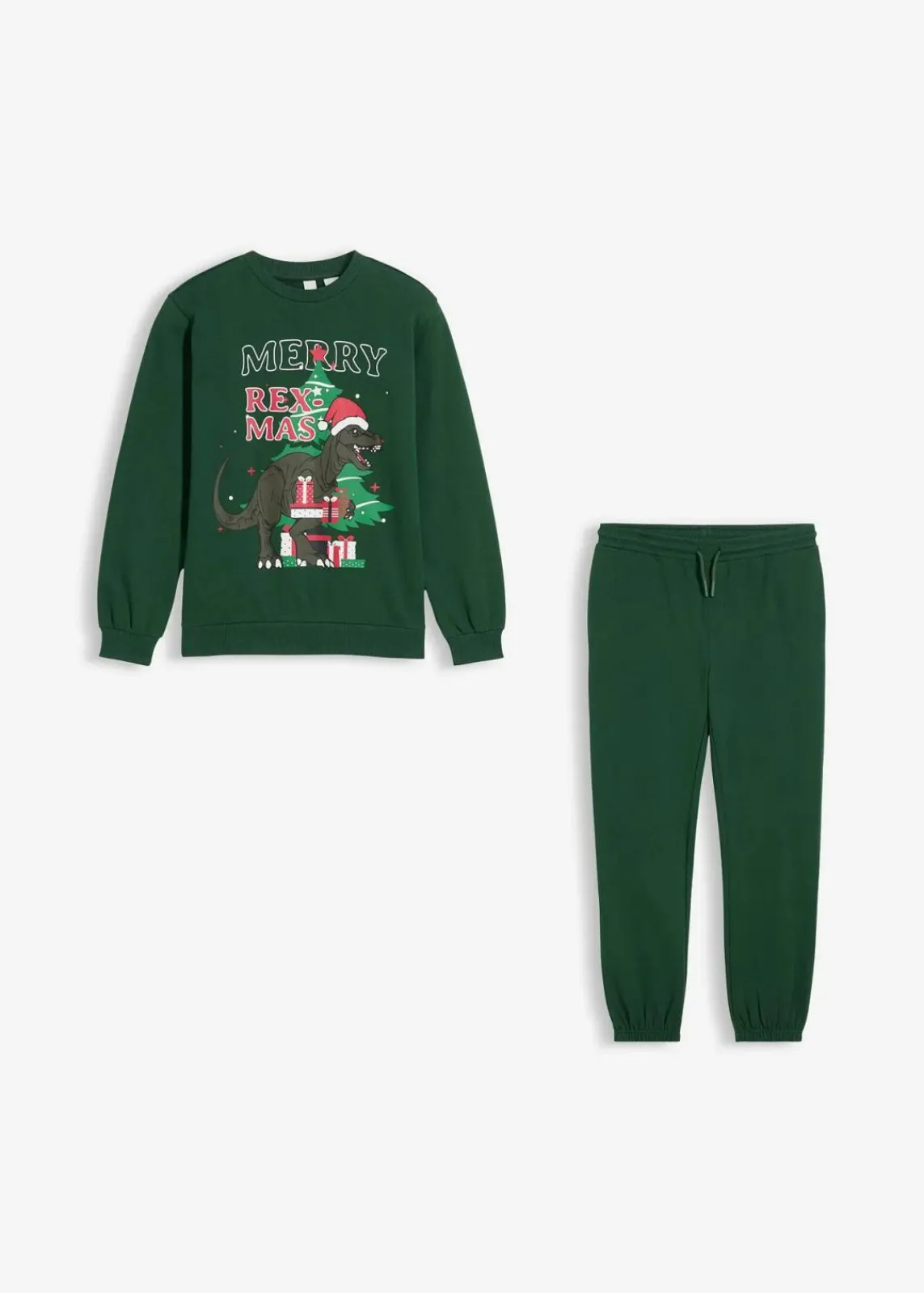 Gemütliches Kinder Sweatshirt und Sweathose im 2-tlg.Set mit weihnachtlichem Druck. Die Hose hat seitliche Eingrifftaschen.