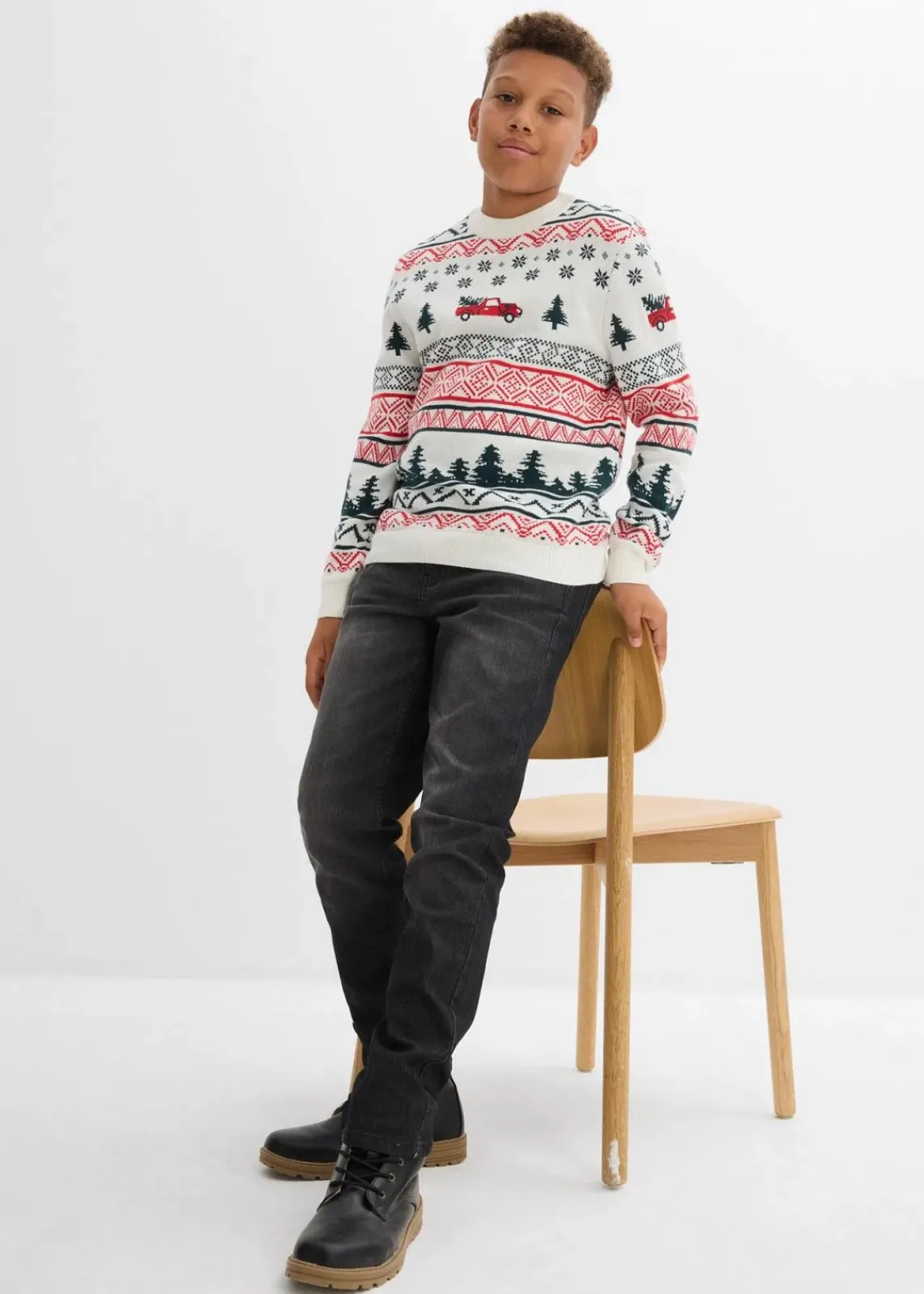 Jungen Rundhalspullover mit Weihnachtsmotiv