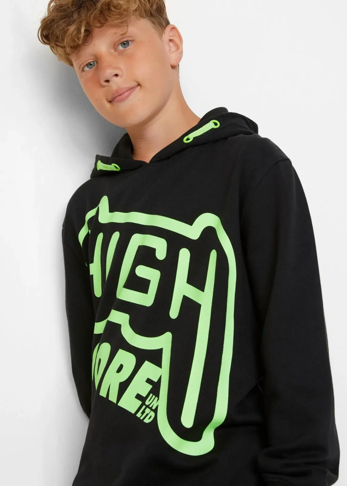 Echte Gamer-Boys werden dieses angesagte Kapuzensweatshirt mit Gaming-Druck auf den ersten Blick lieben. Der locker geschnittene Kapuzenpullover von bpc sorgt durch die Rippbündchen an Saum und Armabschlüssen sowie die Baumwoll-Qualität für einen bequemen Tragekomfort. Kombiniert zu einer Jeans und Sneakern lässt dieser Hoodie sich perfekt für den Alltag stylen.