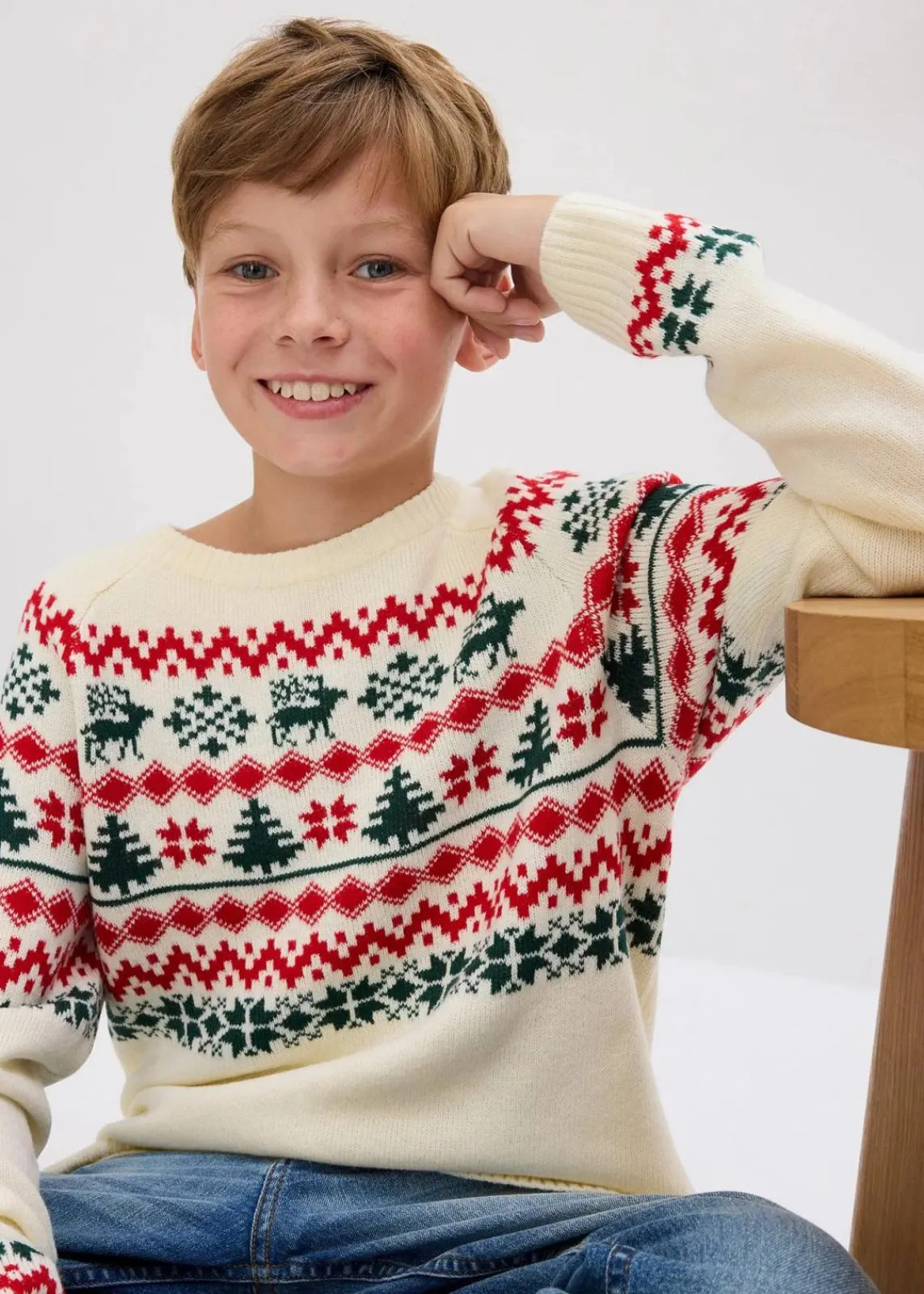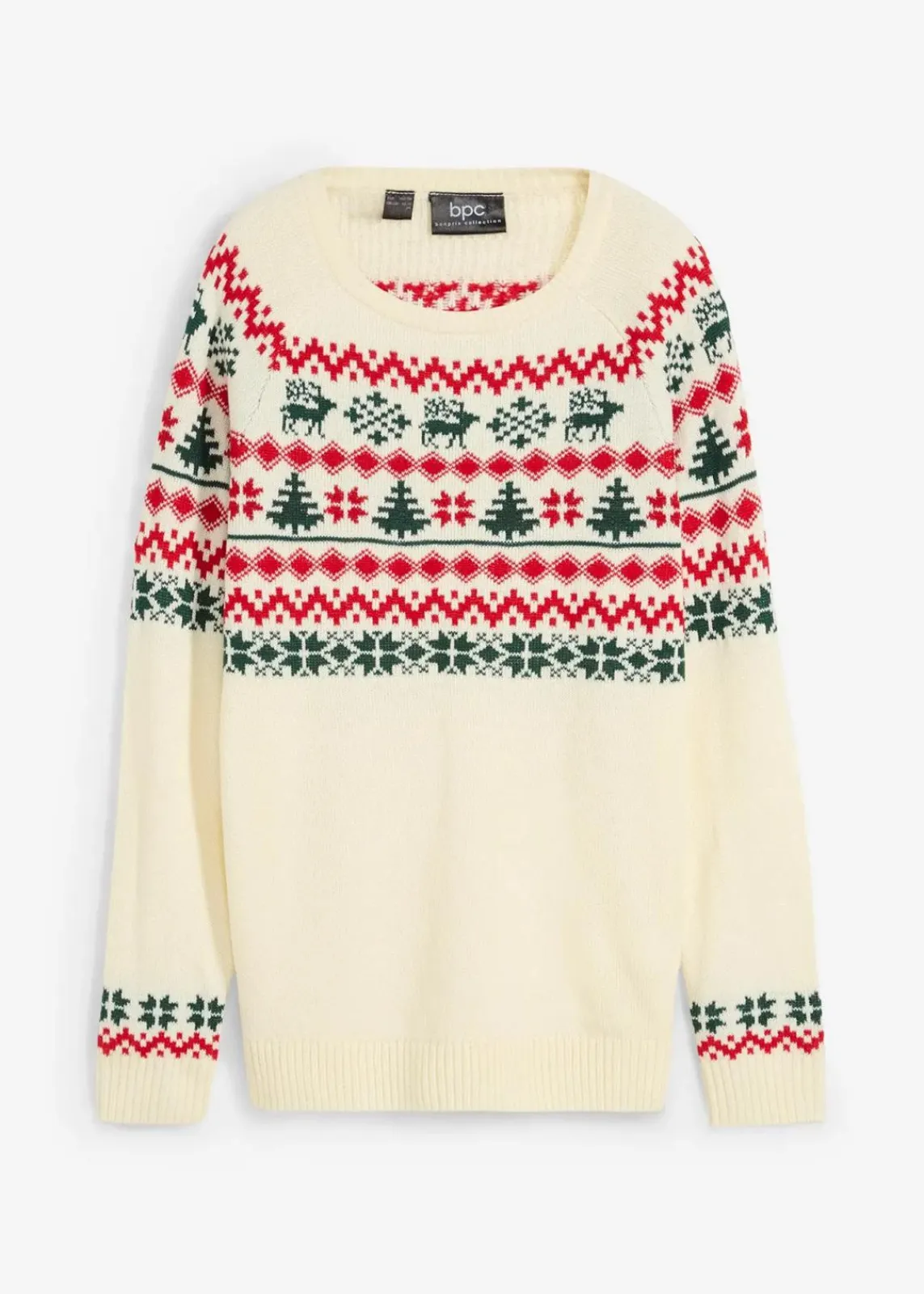 Gemütlicher Pullover mit Norwegermuster und Rundhalsausschnitt