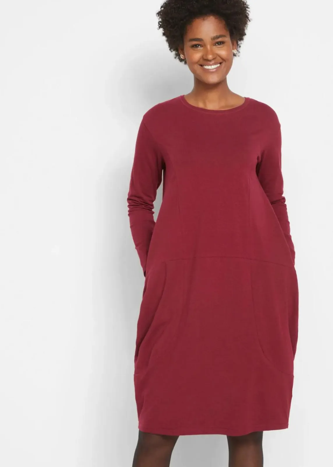 Weites Langarm-Kleid mit Eingriffs-Taschen