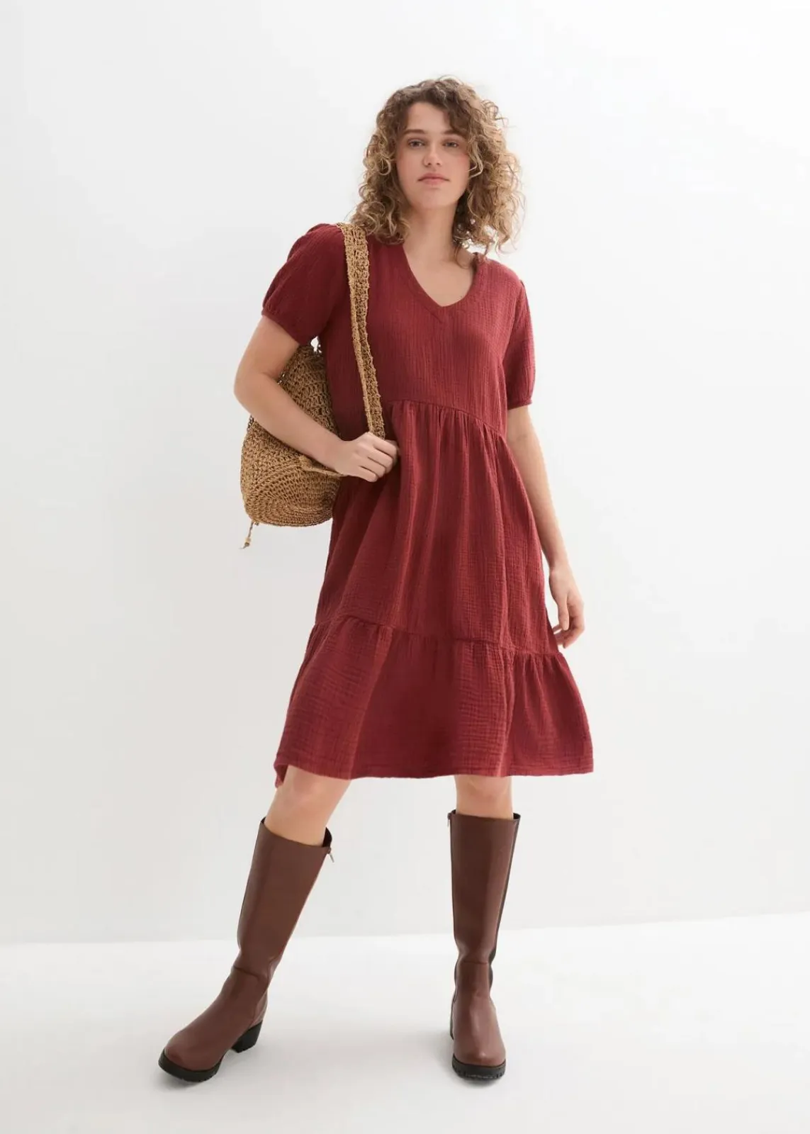 Weites Baumwollkleid mit streckendem V-Ausschnitt