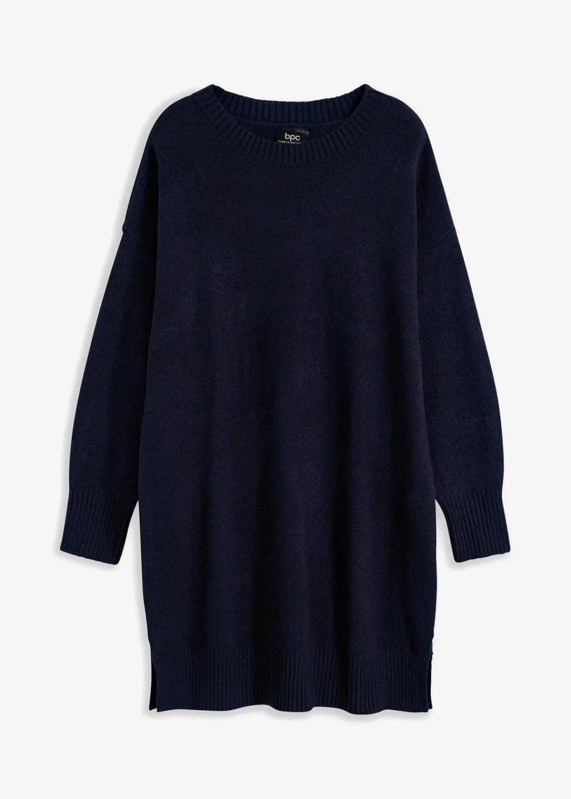 Lässiges Strickkleid mit Schlitz, oversized geschnitten