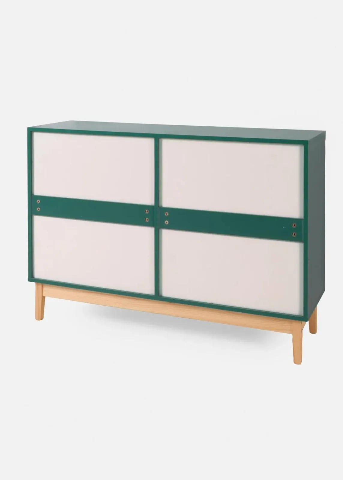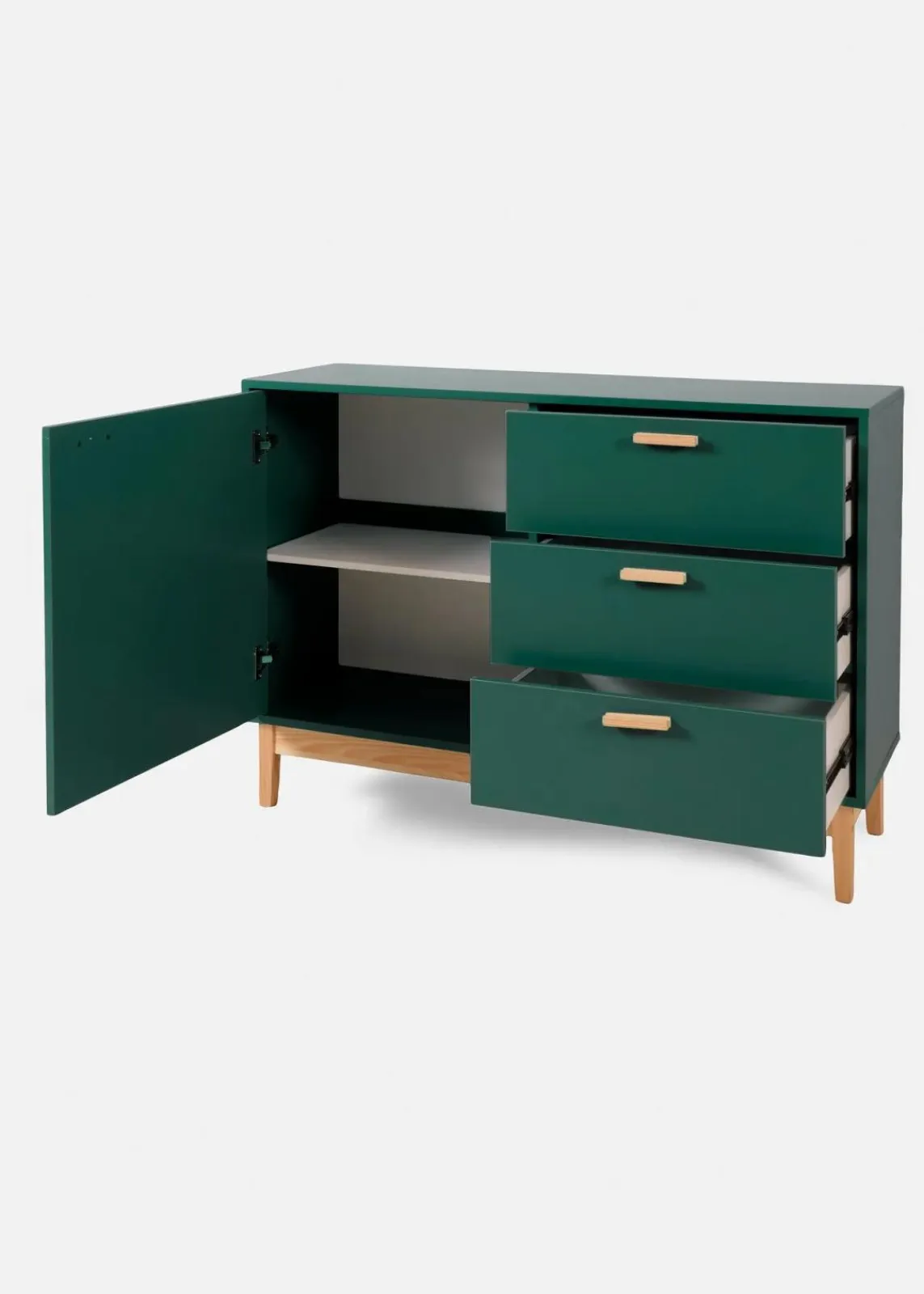 Dieses Dielen-Sideboard bringt Ordnung und Style in Deinen Eingangsbereich. Die moderne Farbgebung in Grün kombiniert mit Holzdetails sorgt für einen zeitgemäßen Look. Mit den drei Schubladen und der geräumigen Tür hast Du Platz für Schuhe, Accessoires und mehr. So wird Dein Flur nicht nur aufgeräumt, sondern auch zum Hingucker.