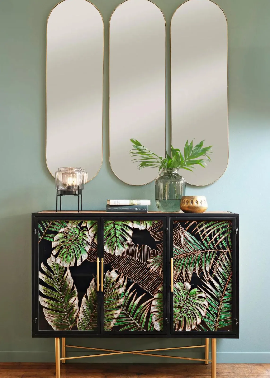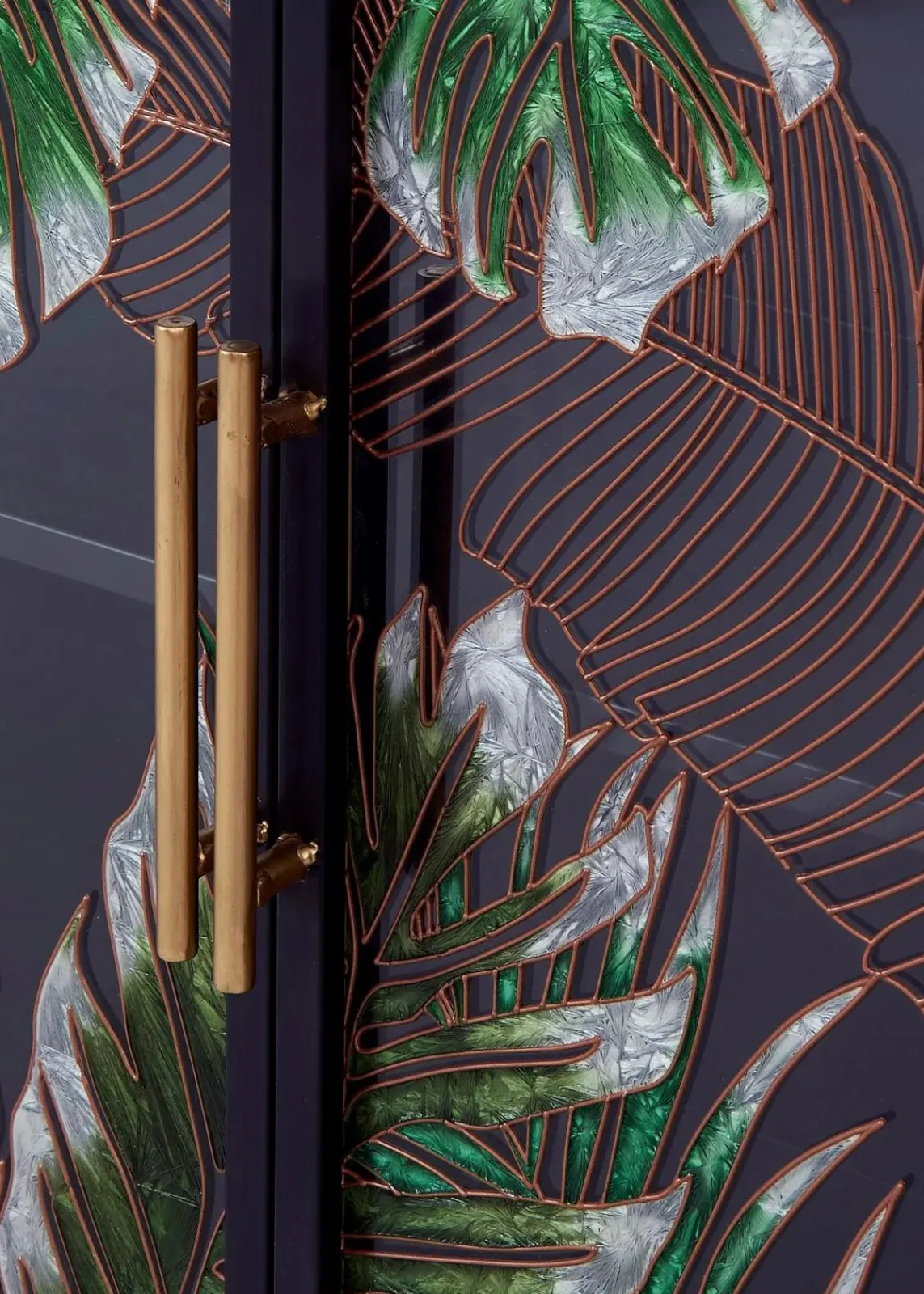 mit 3 Türen aus handbemaltem Glas und einem Einlegeboden.