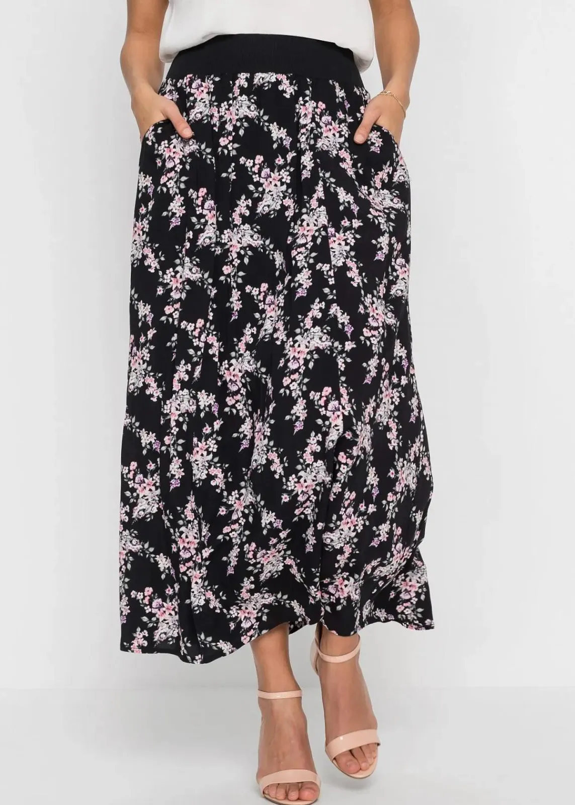 Moderner langer Rock mit Gummibund und Eingrifftaschen