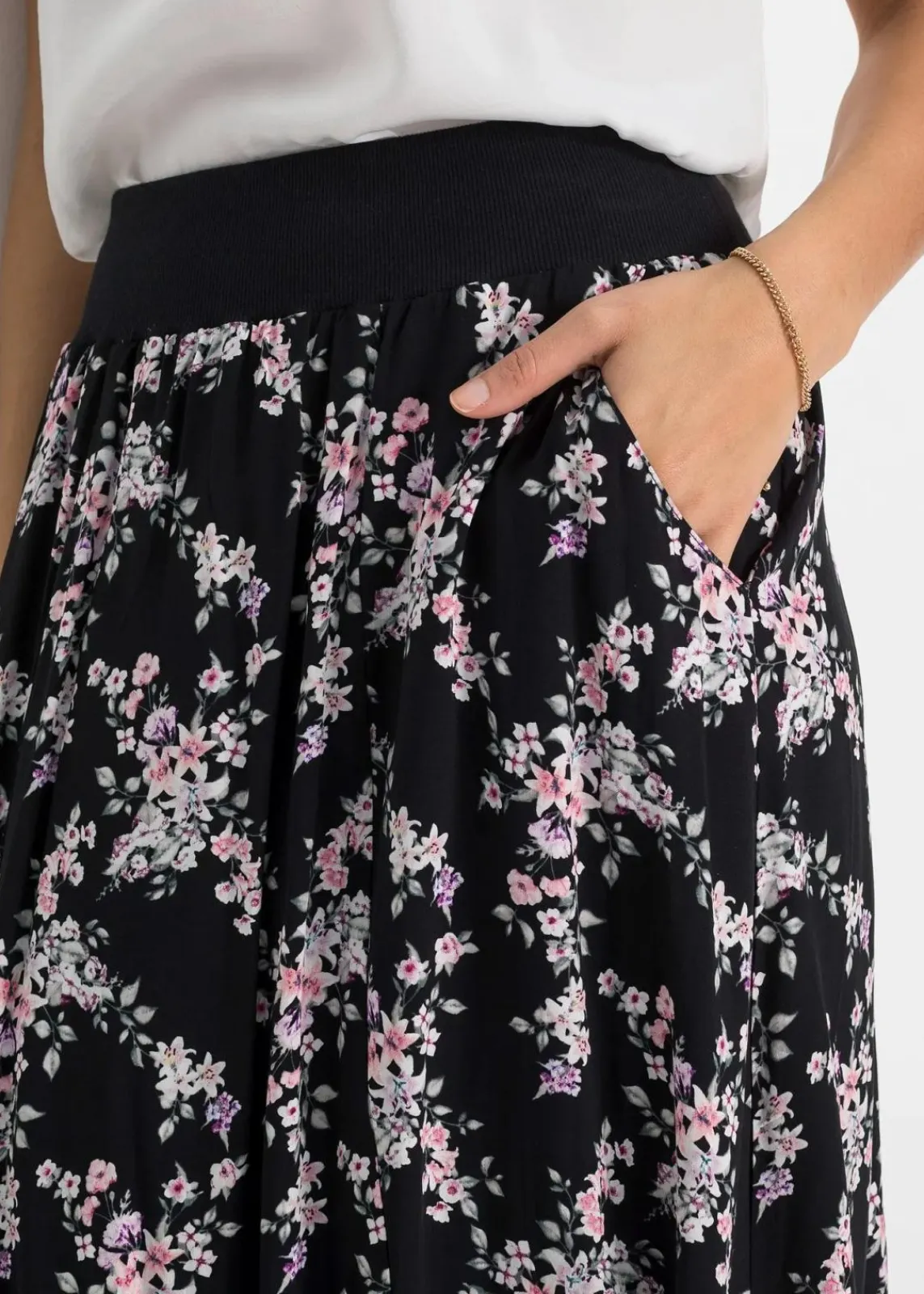 Moderner Maxirock von BODYFLIRT. Der Rock ist mit Eingrifftaschen versehen. Länge in Gr. 38 ca. 96 cm.
