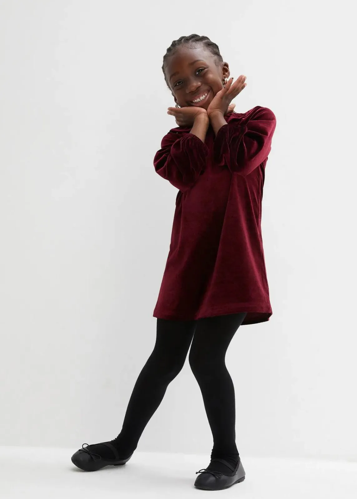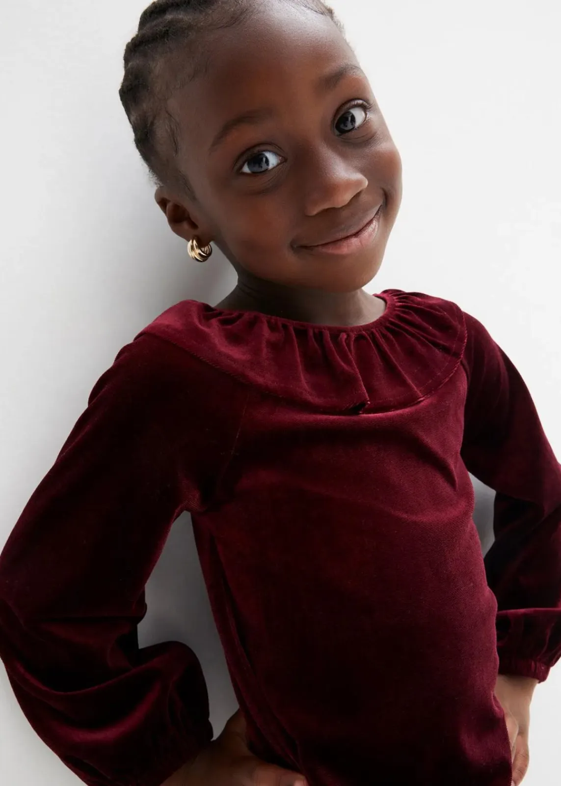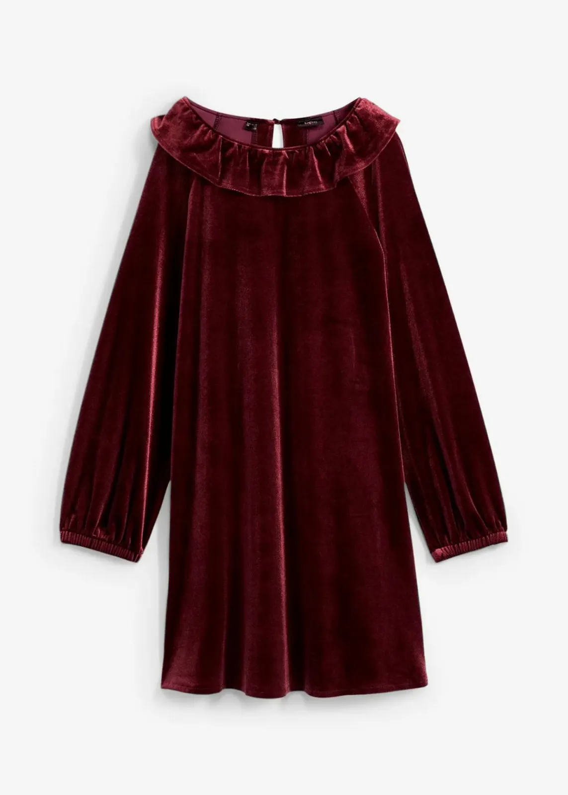 Dieses bezaubernde Samtkleid kombiniert Stil und Komfort! Mit einem runden Halsausschnitt und einem Rückenausschnitt mit Schlitz, Knopf und elastischem Volant bietet es einen charmanten Look. Die langen, eingesetzten Ärmel haben einen elastischen Saum für einen verspielten Gathering-Effekt. Die reguläre Passform und die A-Linie sorgen für eine schmeichelhafte Silhouette, während die Mini-Länge das Kleid perfekt für besondere Anlässe macht.