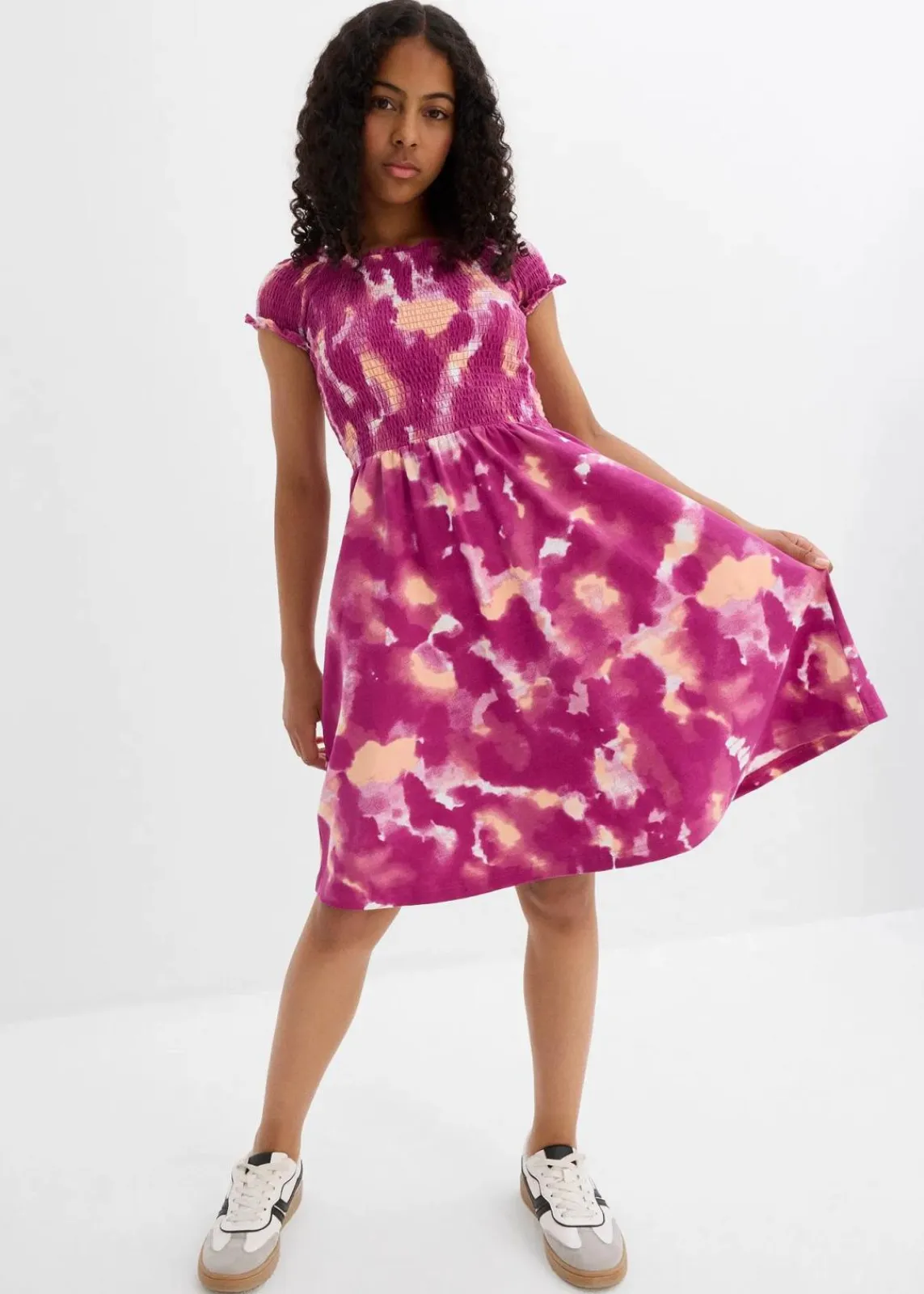 Sommerliches Jerseykleid für Mädchen in Batik-Optik