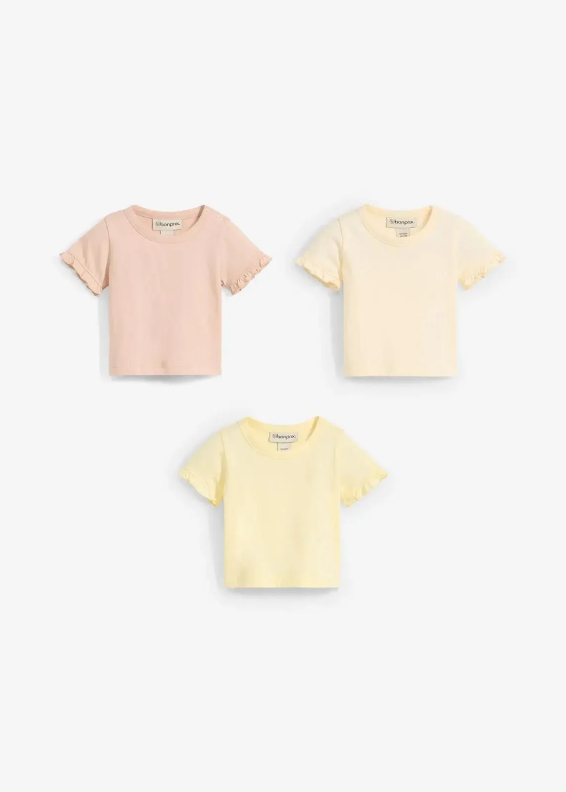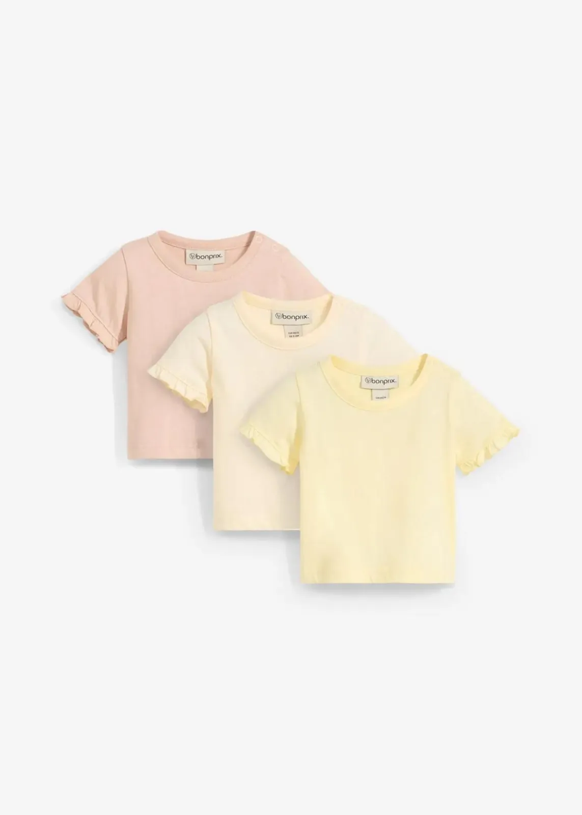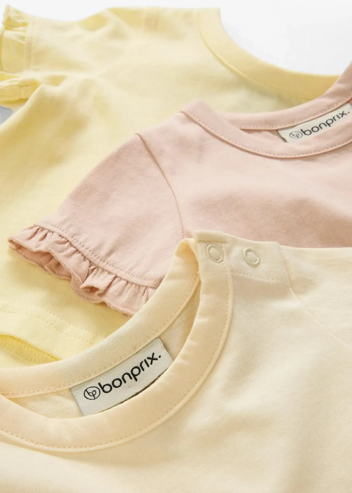 Weiche T-Shirts aus 100 % Bio-Baumwolle. Mit zarten Rüschen an den Ärmeln und Druckknöpfen an einer Schulter für leichtes An- und Ausziehen. Bequemer Schnitt und hautfreundliches Material – ideal für den Alltag.