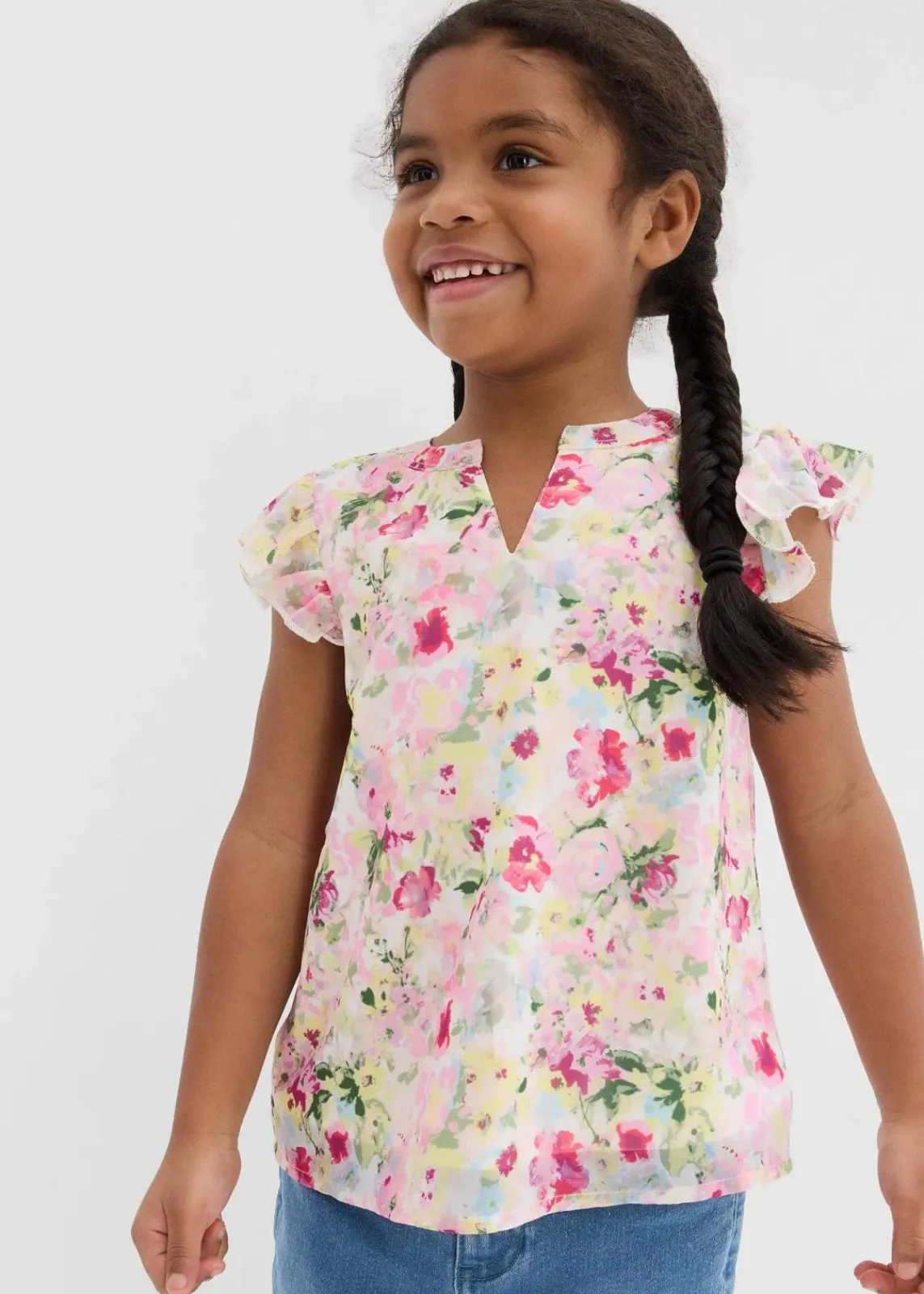 Verspielte Tunika für Mädchen mit V-Ausschnitt und Rüschen