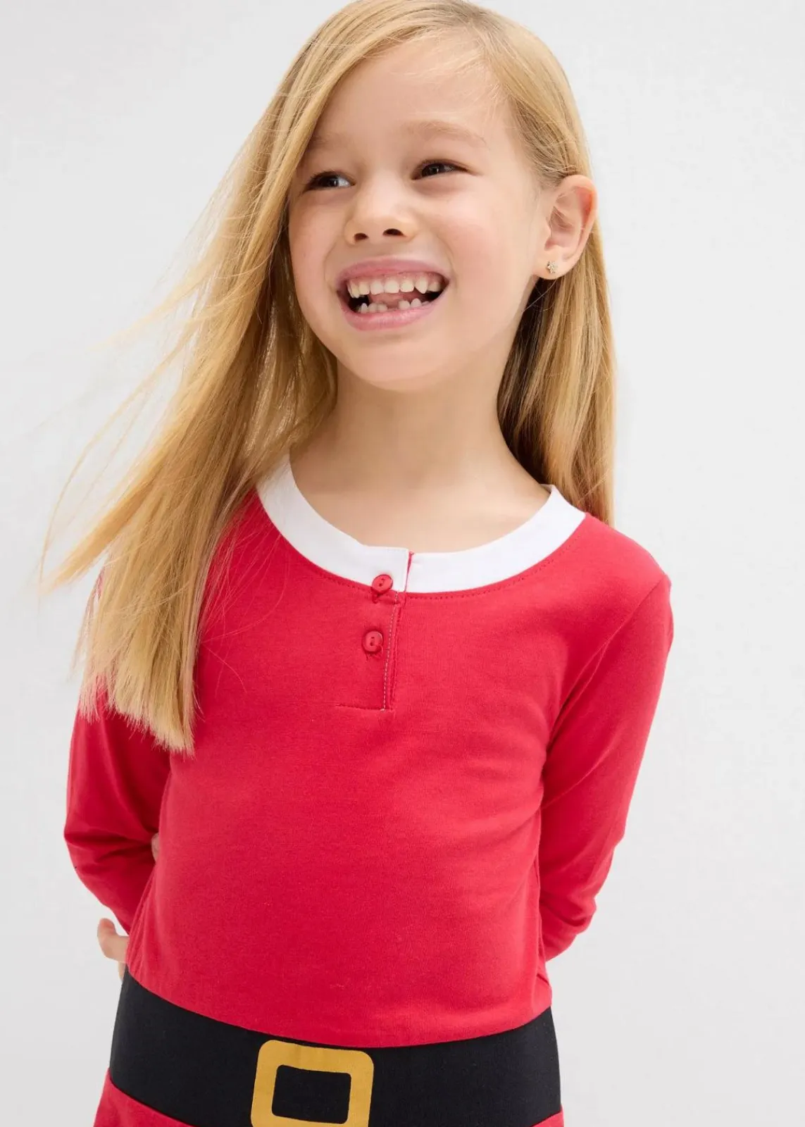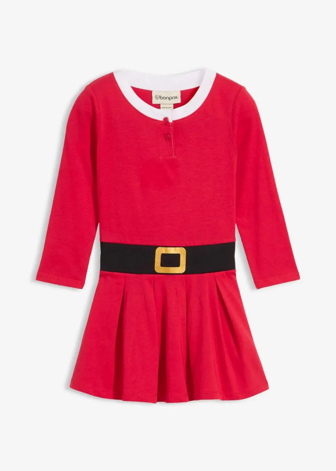 Tolles Langarm-Jerseykleid für Mädchen: Dieses weihnachtliche Kleid mit Knopfleiste ist der Hingucker in den Wintermonaten.