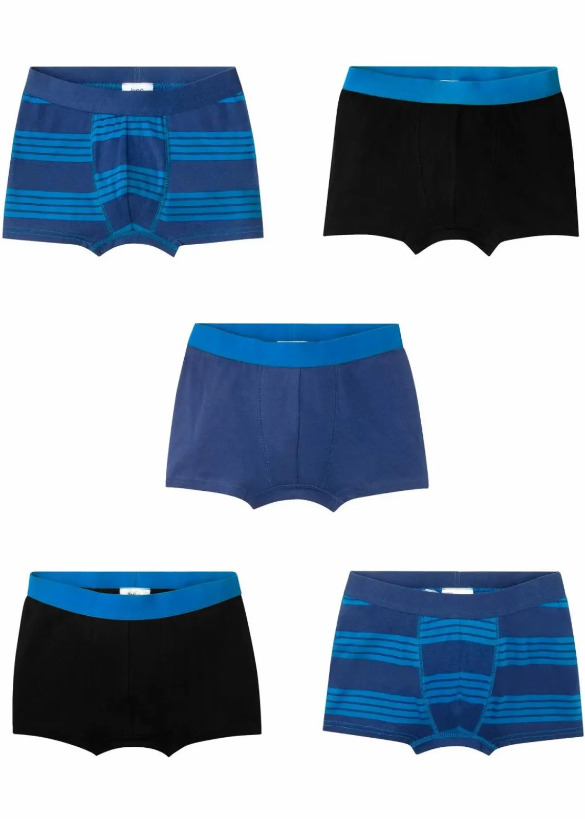 Coole Boxershorts im 5er-Pack mit breitem elastischen Bund. Die gute Elastizität sorgt für einen Top-Komfort. Die eher eng anliegenden Shorts haben einen hohen Baumwollanteil und liegen somit weich auf der Haut. In unterschiedlichen Ausführungen bedruckt und in uni!