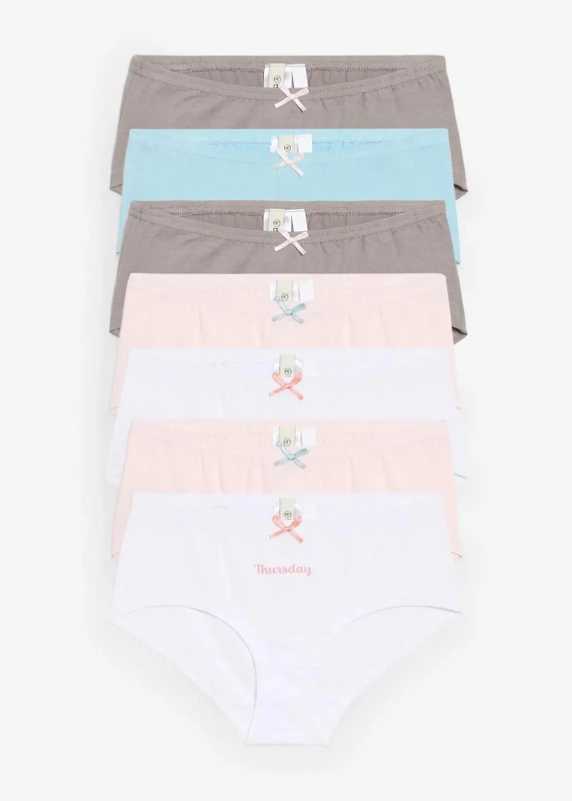 Klassische Hipster mit allen Wochentagen und kleiner Schleife im praktischen 7er Pack.