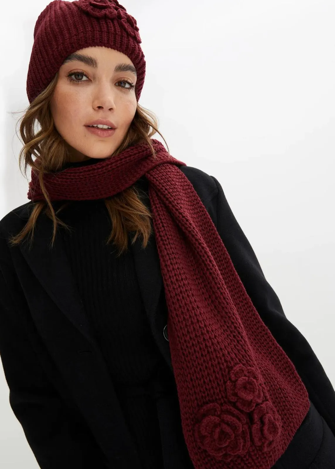 Süßes Strickset (2-tlg. Set) mit Blumen-Applikationen