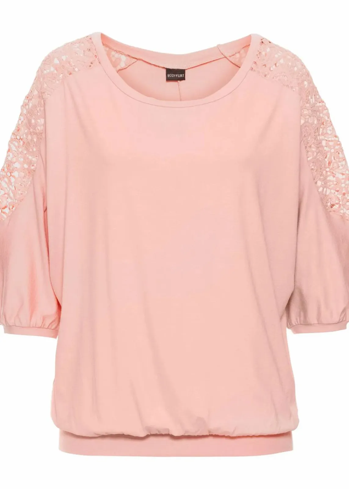 Attraktives Oversize- Shirt mit dekorativer Spitze an den Ärmeln.