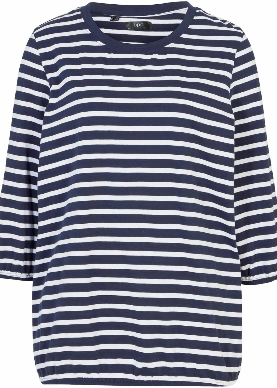 Gestreiftes Baumwoll-Shirt mit 3/4 Ärmeln und elastischem Einsatz am Bund.