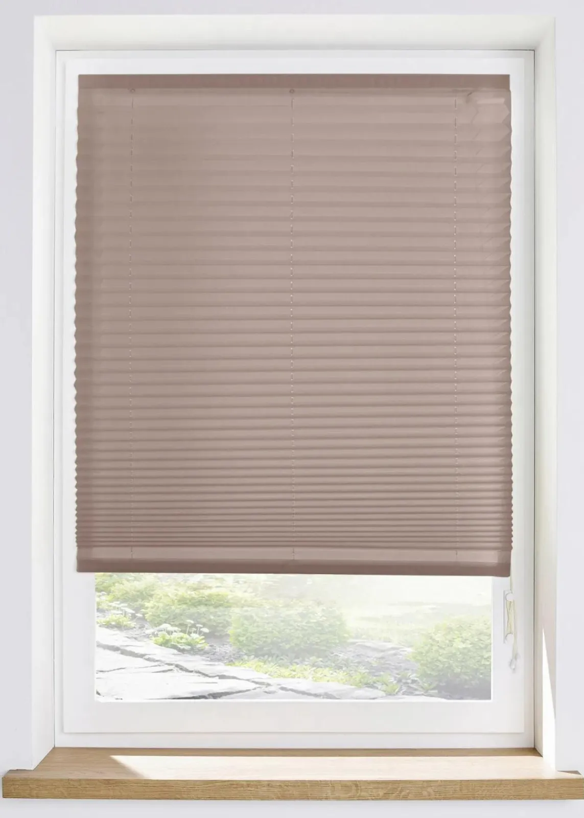 Blickdichtes Plissee mit cleverer Klettband-Anbringung: dieses wird oben auf dem Fensterrahmen geklebt. Das Gegenstück ist am Plissee. Kein Bohren & Schrauben! Ideal für Mietwohnungen. Das Plissee ist freihängend und somit nicht fest verspannt.