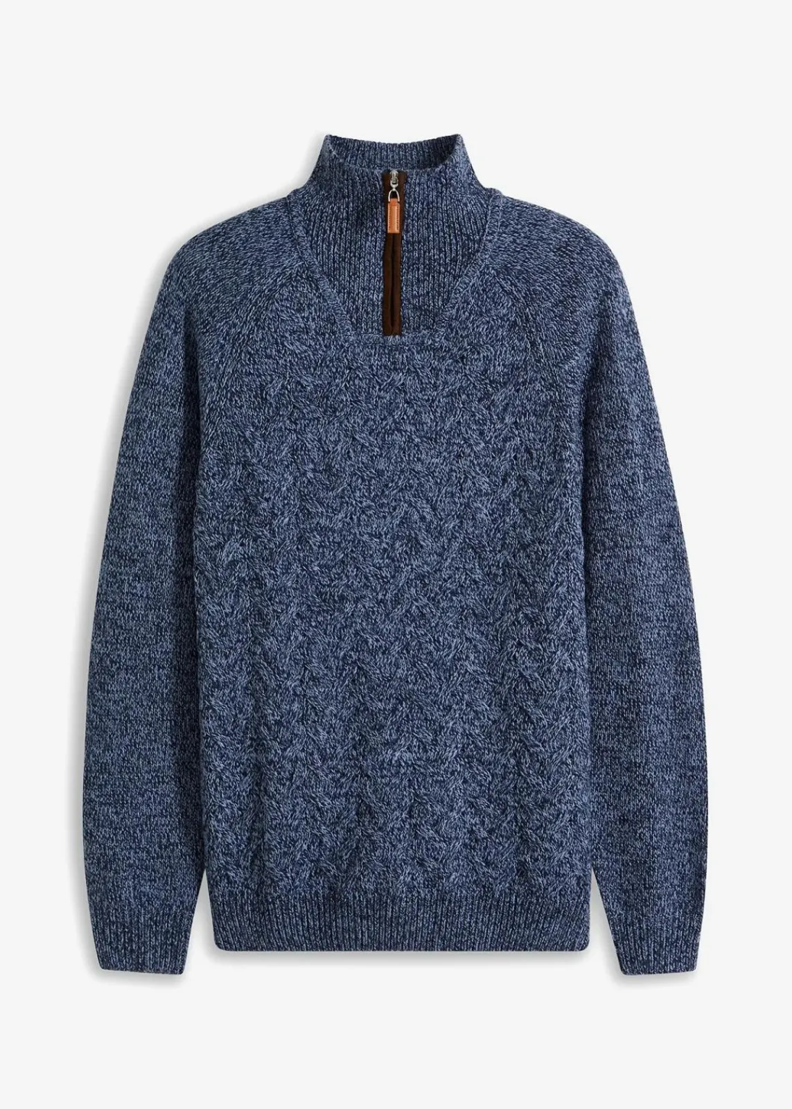 Aktuelles Zopfmuster, trendige Melangeoptik und wärmende Wollmischung