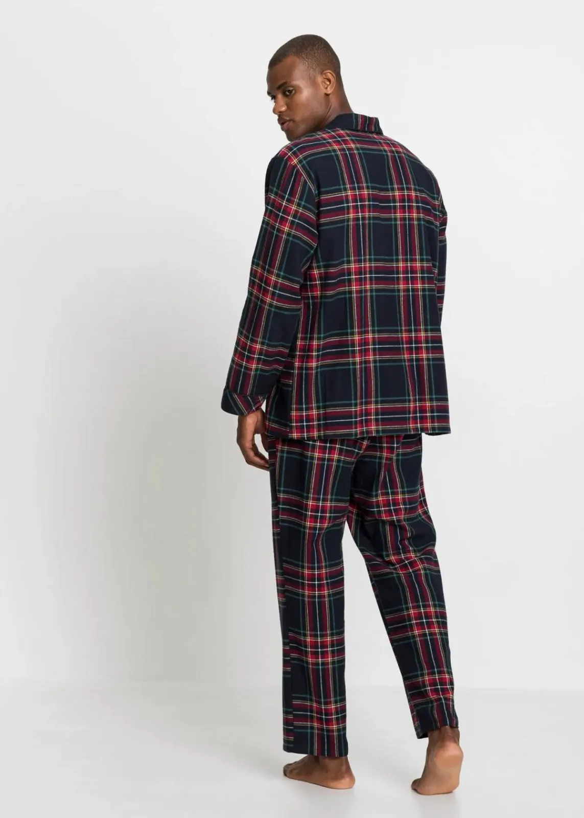 Komfortabler und modischer Herren Flanell Pyjama mit Knopfleiste