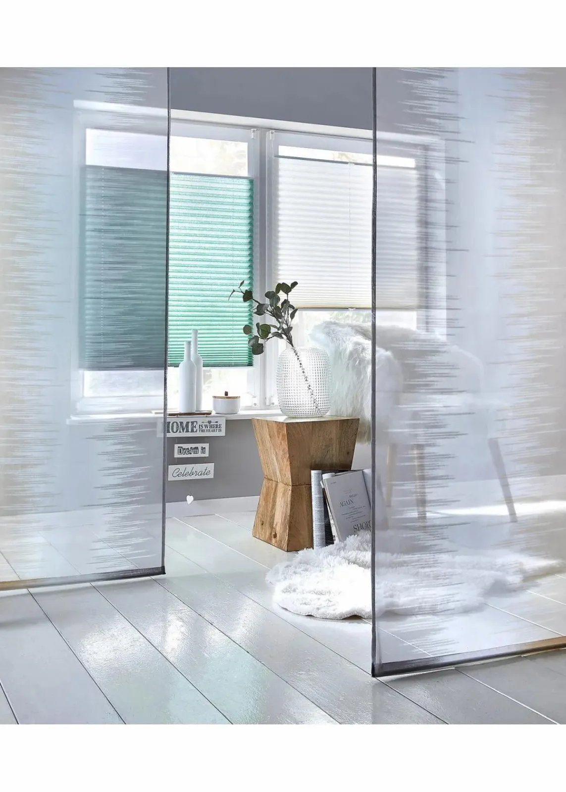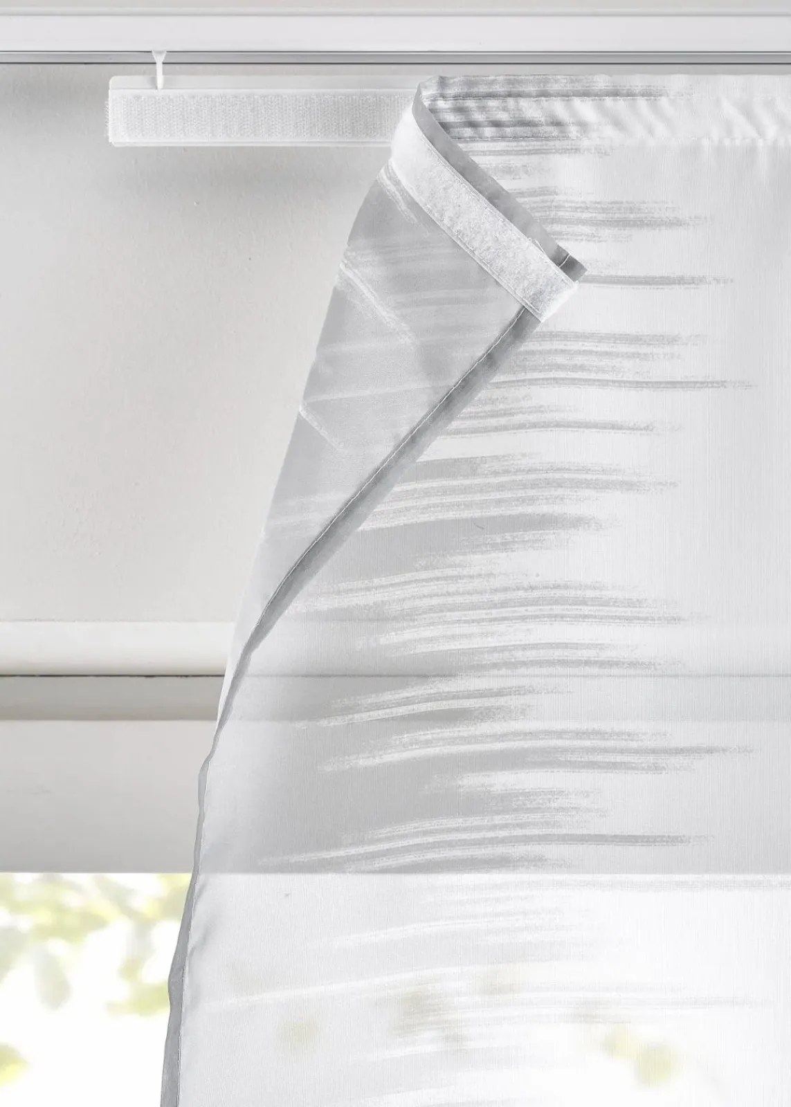 - Lieferumfang:inkl. Beschwerungsstange und Klettschiene mit Gleitern zum Einhängen in die Gardinenschiene