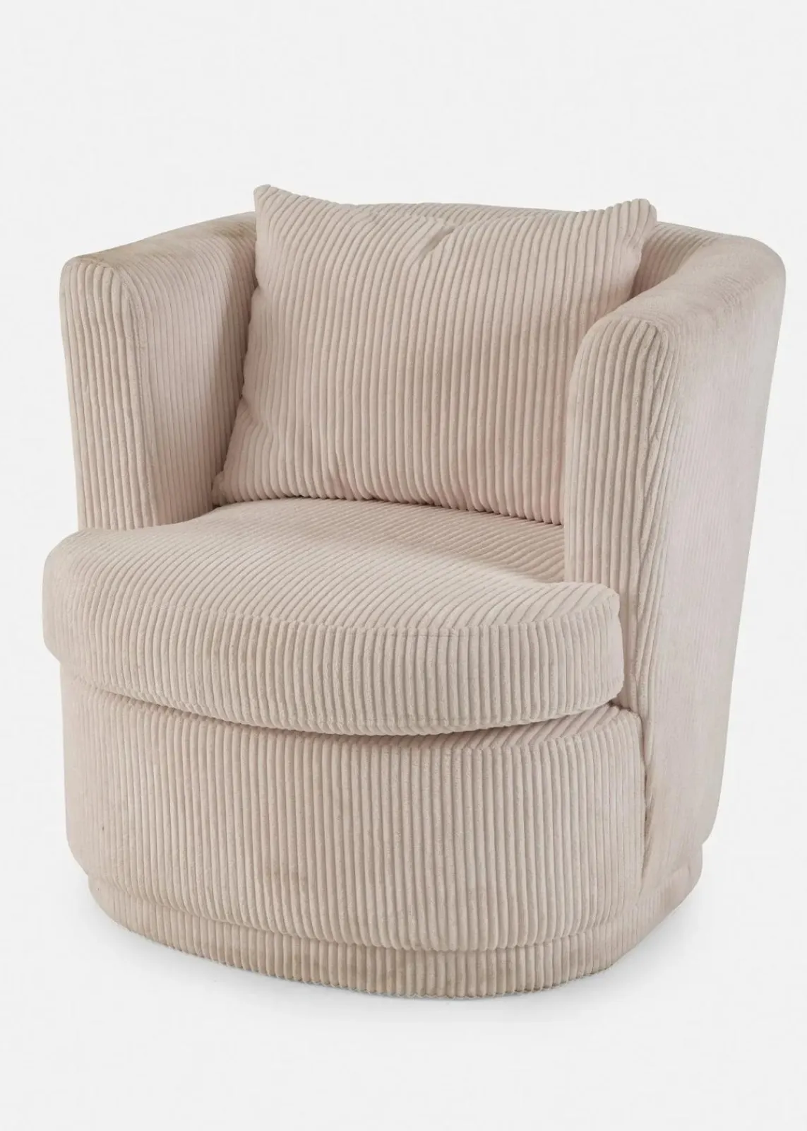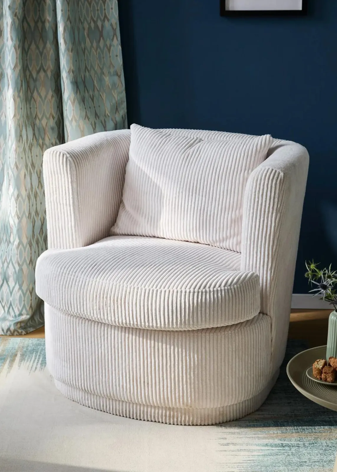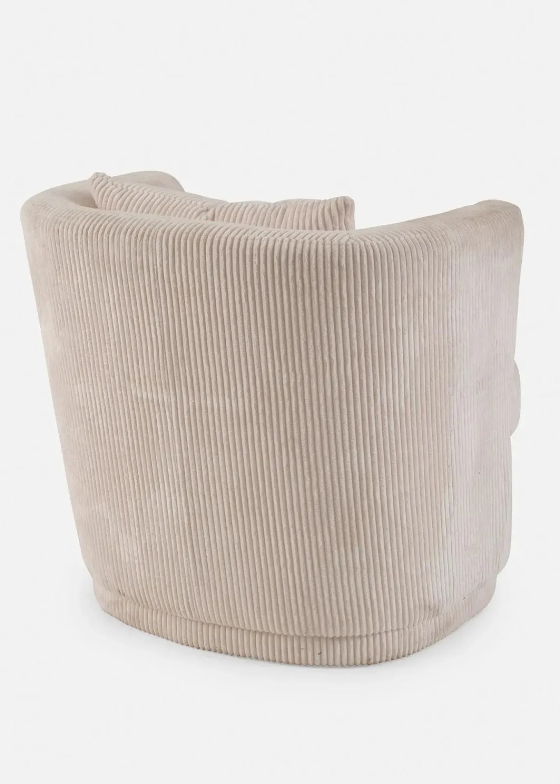 Unser stilvoller Sessel mit rundem Fuß vereint modernes Design und gemütlichen Komfort. Der helle Cremefarbton verleiht Deinem Raum eine einladende Atmosphäre, während der hochwertige Kordbezug für ein angenehmes Sitzgefühl sorgt.