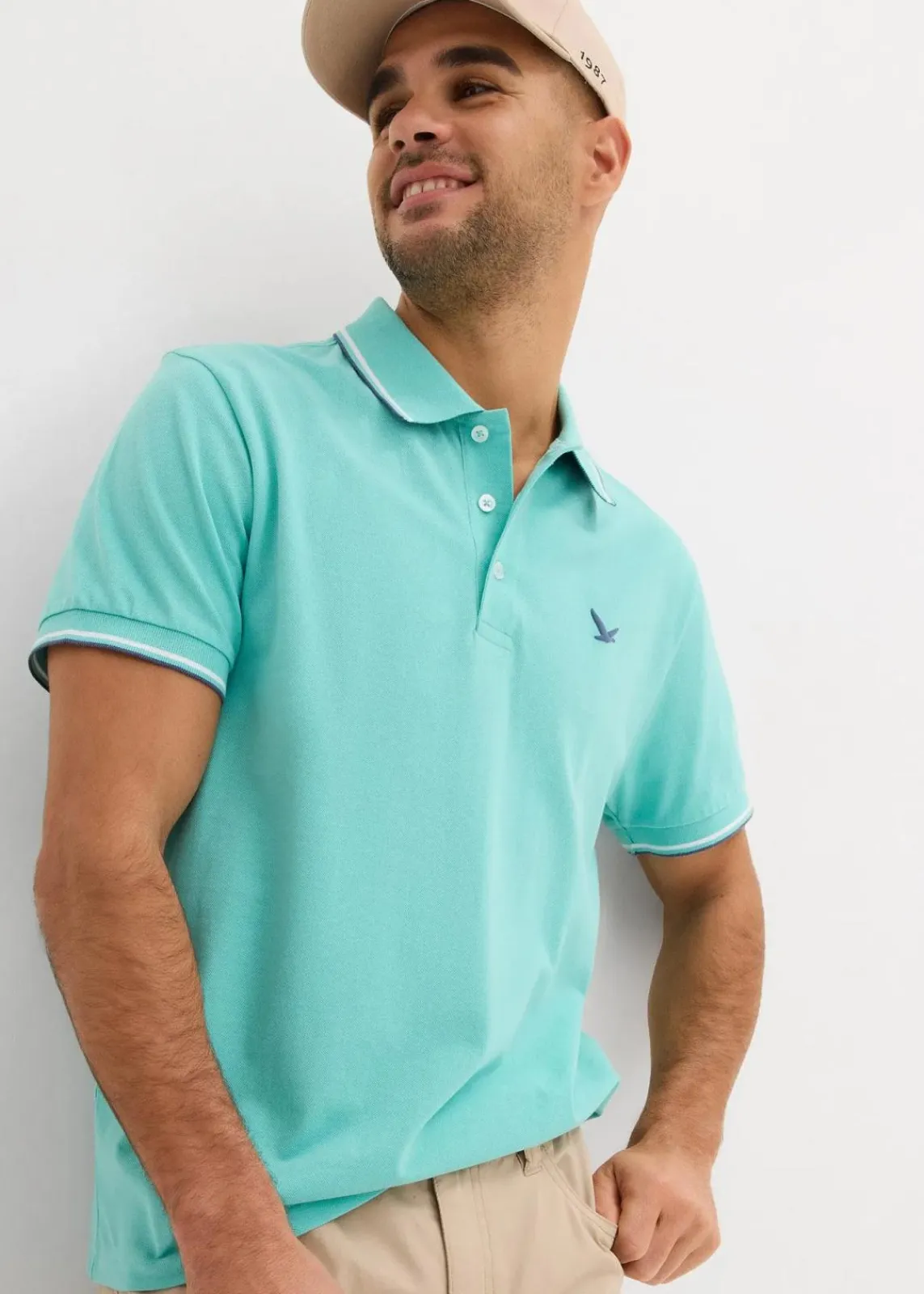 Sportives Poloshirt mit kleinem Logoprint und Kontrastdetails