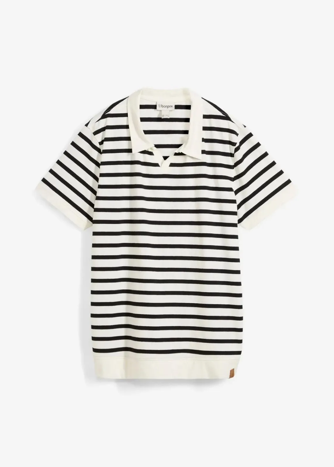 Tolles Poloshirt mit Bündchen und einem kleinen Lederimitat Label