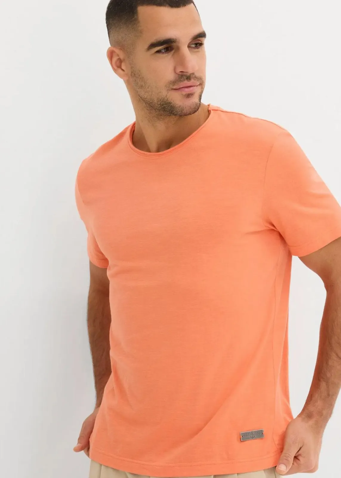 Modernes T-Shirt im Regular Fit mit offenem Rundhalsausschnitt