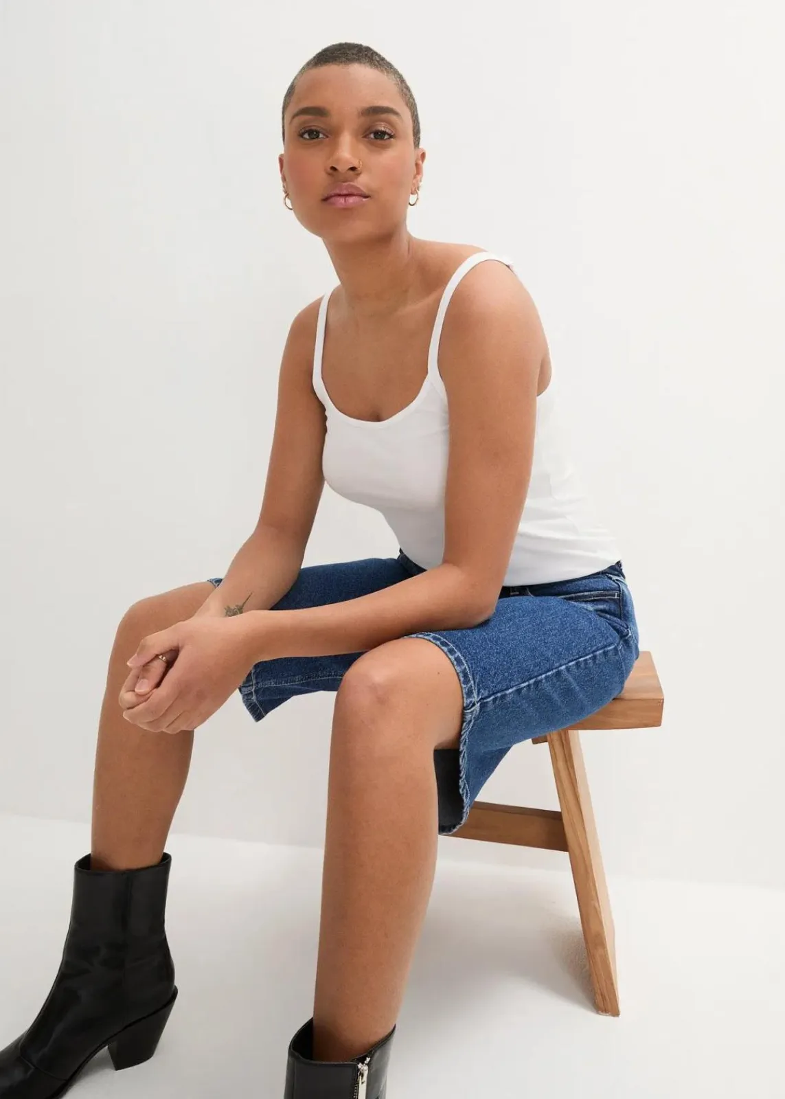 Spaghetti-Top mit langem Schnitt aus Baumwolle, 2-er-Pack