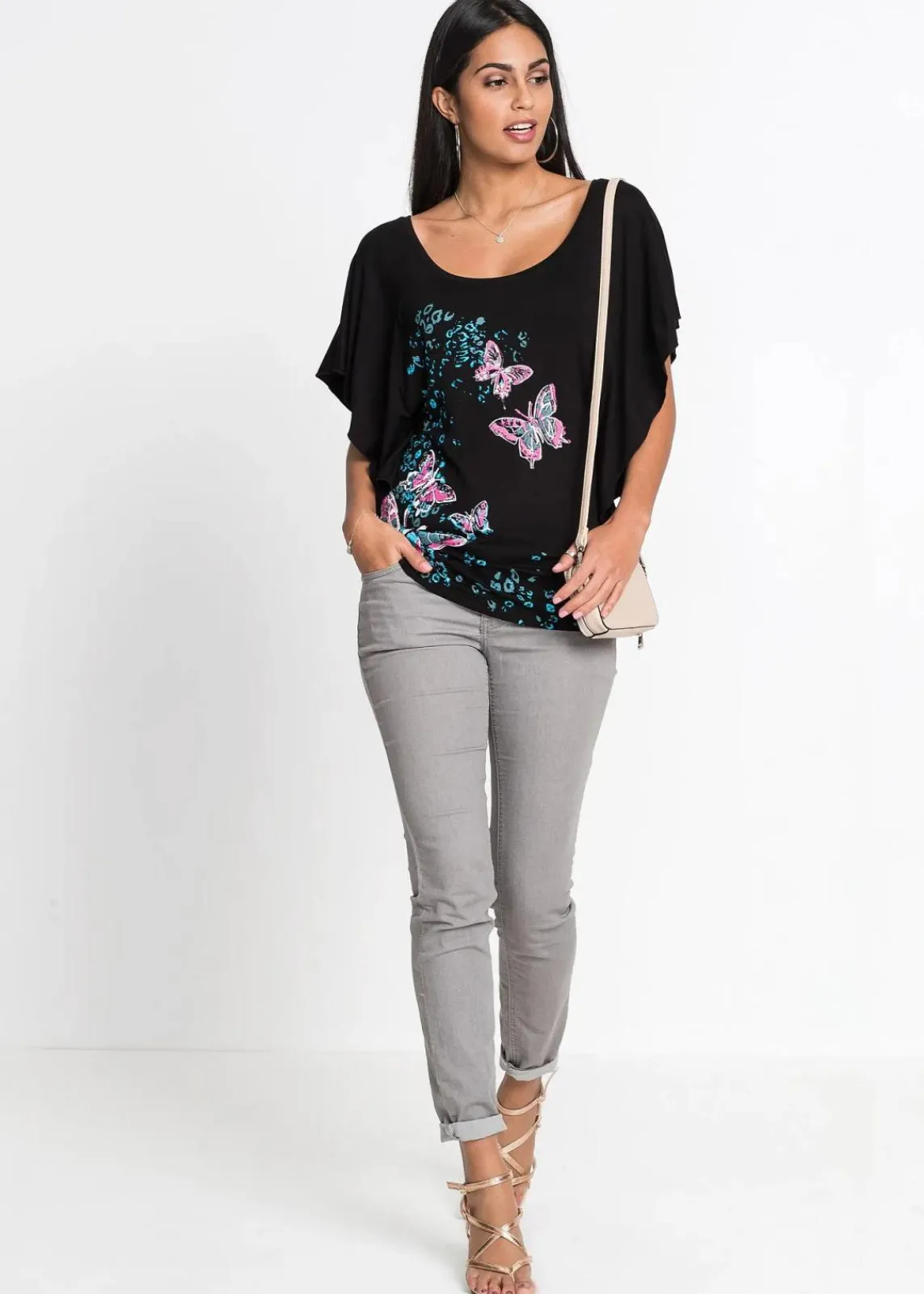 Aus der Kollektion der Marke BODYFLIRT stammt dieses ansprechende Fledermausshirt mit Rundhalsausschnitt.Die Variante mit modischem Schmetterlingsdruck ist ebenso stilvoll wie das unifarbene Modell. Im Sommer passt eine kurze Shorts perfekt zu dem Oberteil mit Fledermausärmeln und figurumspielendem Schnitt. Ergänzt um schicke Sandalen sowie eine schöne Handtasche ist das Outfit für die modebewusste Dame komplett.