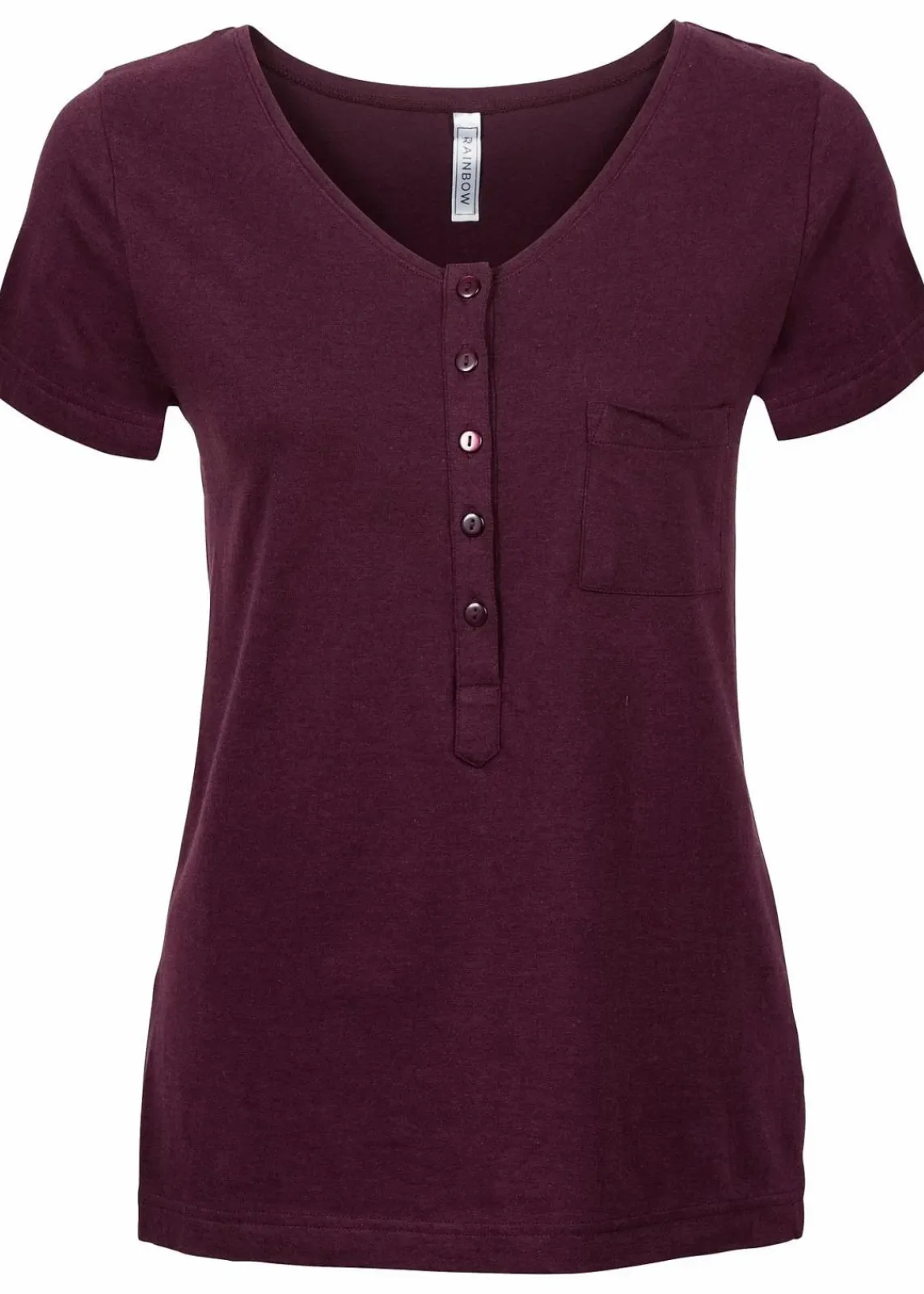 mit großem V-Ausschnitt, Knopfleiste und kleiner Brusttasche . Länge in Gr. 40/42 ca. 66 cm.