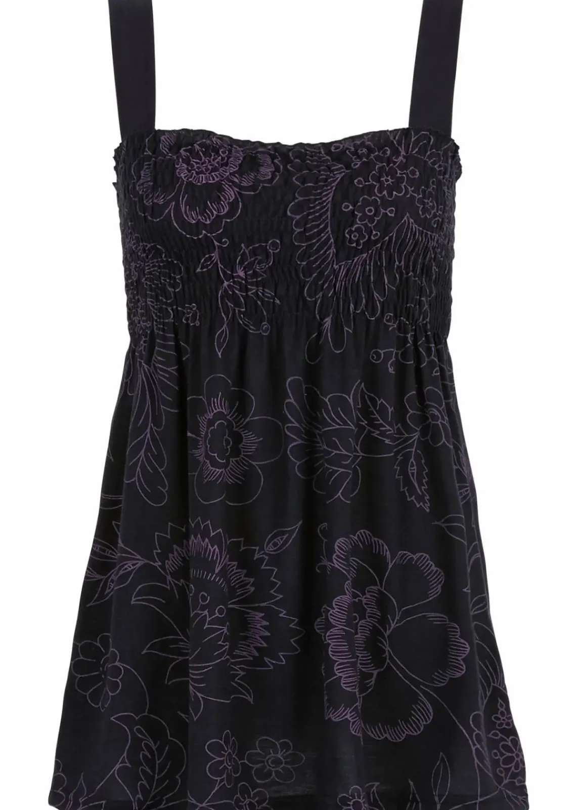 Breite Träger und eine den Körper umspielende Passform charakterisieren dieses Tunikatop. Im Fokus steht der gesmokte Einsatz im Brustbereich. Von dort aus fällt der Stoff locker herab. Das charmante Tunikatop von BODYFLIRT ist vielseitig einsetzbar. Es überzeugt zu 7/8-Jeans und Sandalen. Shorts oder ein Minirock im coolen Denim-Look stehen ihm ebenfalls großartig.